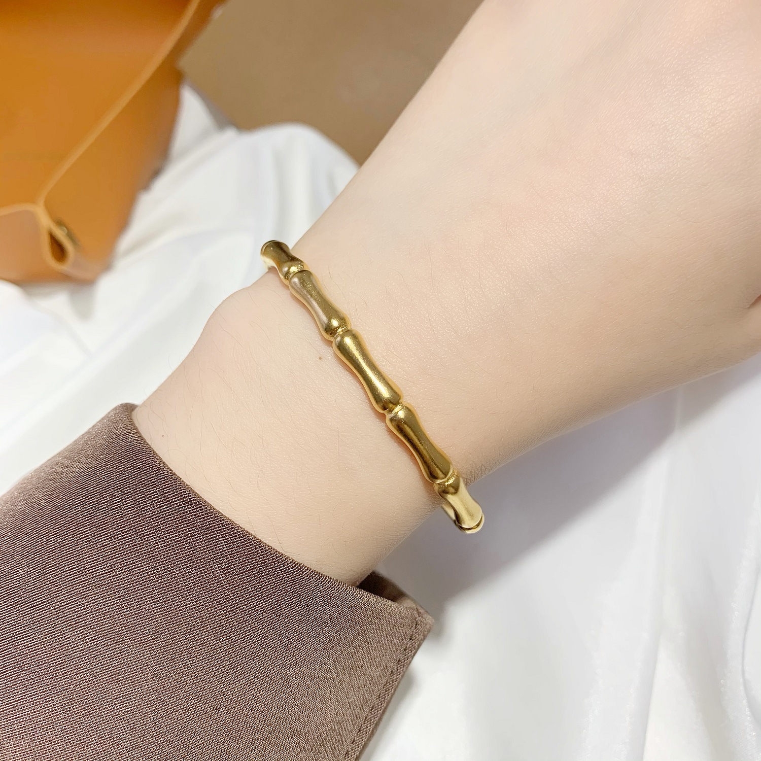 气质竹节仿黄金沙金手镯女久不掉色 百搭开口可调节磨砂手环镯子 English | 投诉