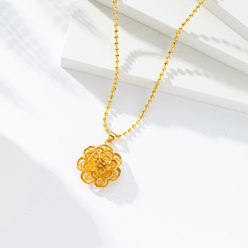 越南沙金爱心花朵项链女金店同款仿24k黄金首饰品久不掉色锁骨链 English | 投诉