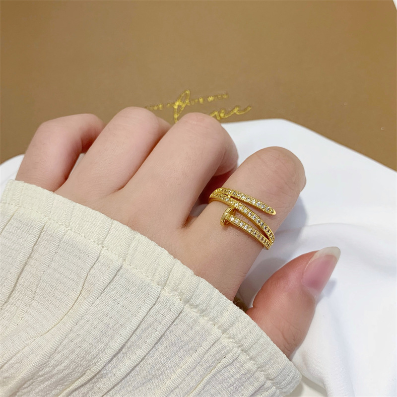百搭多层闪钻钉子戒指女抖音快手同款首饰品久不掉色食指戒指环