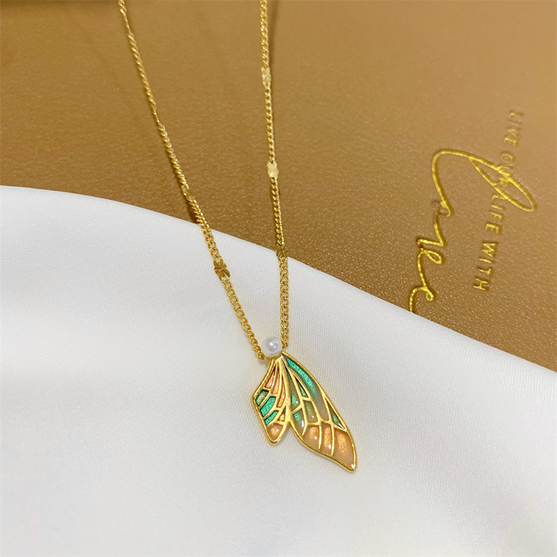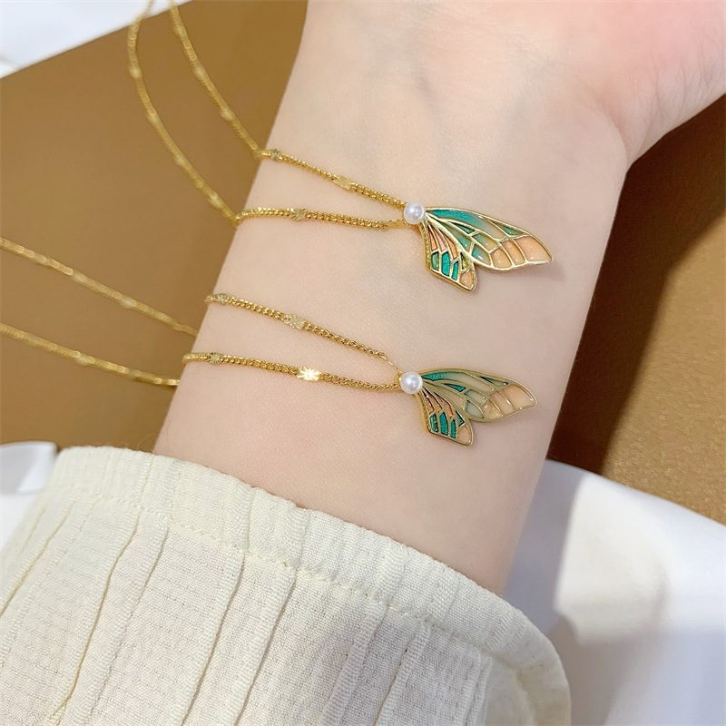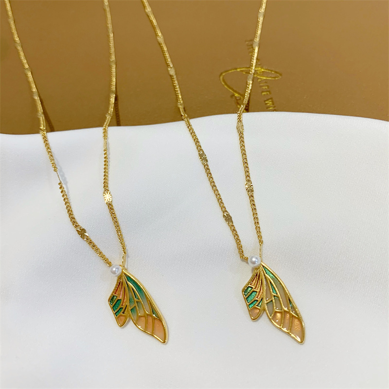 中国风蝴蝶蝉翼吊坠古法传承越南沙金锁骨链久不掉色项链首饰品女 English | 投诉
