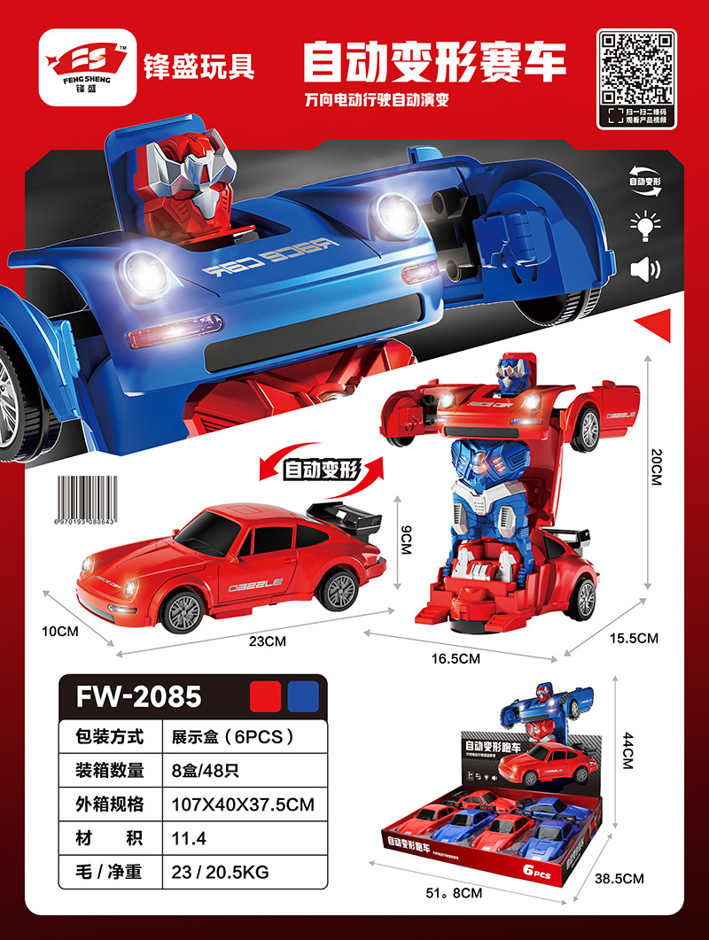 【产品名称】 :6只庄电动万向灯光音乐变形玩具车(3C证)