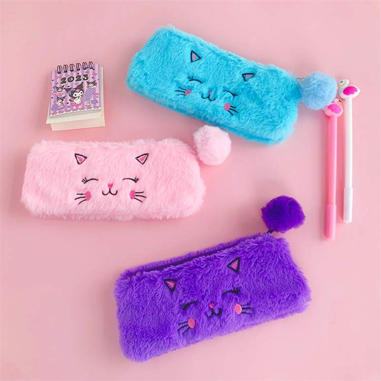 韩版卡通毛绒小猫咪笔袋收纳铅笔物品可爱软萌学生文具盒厂家批发