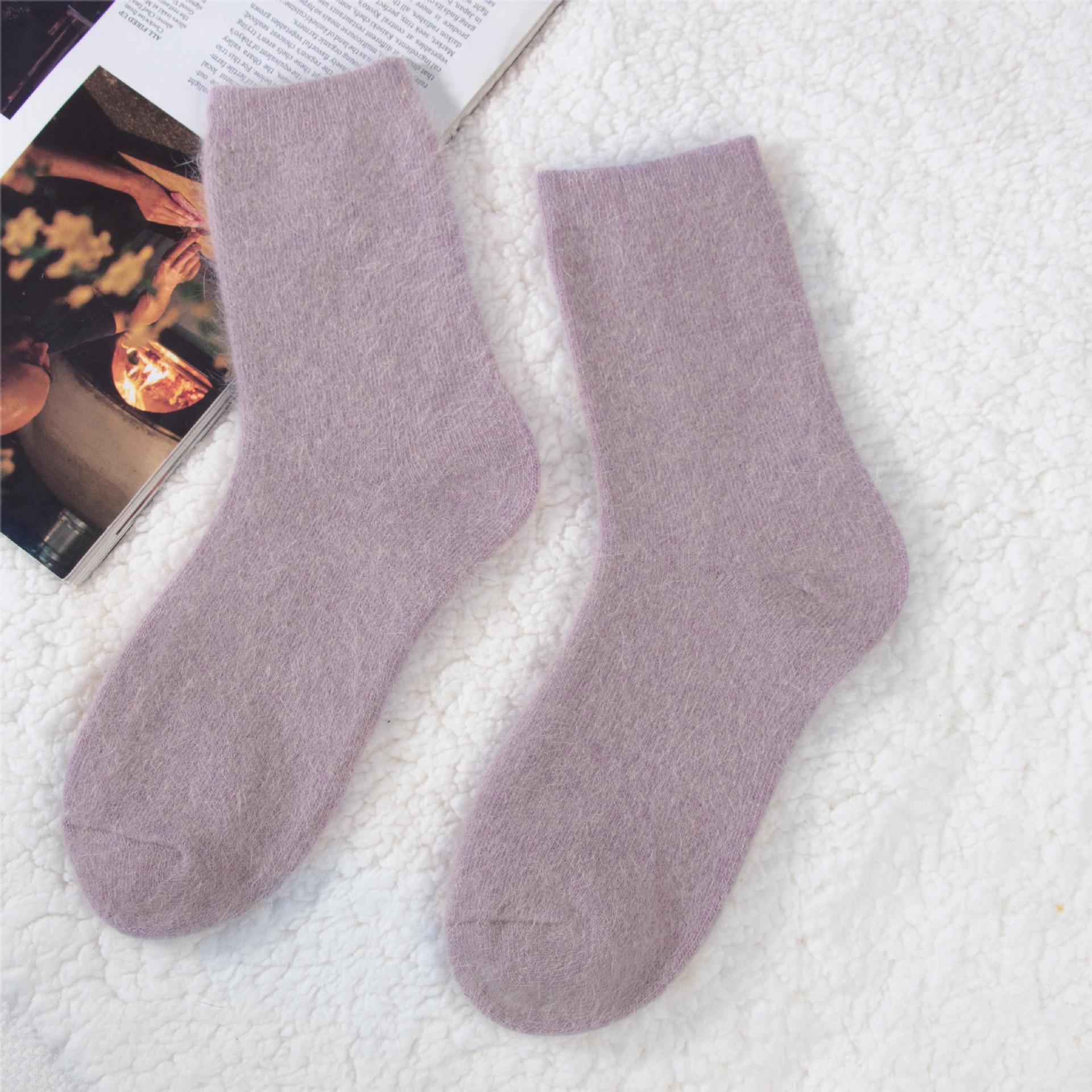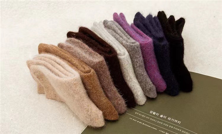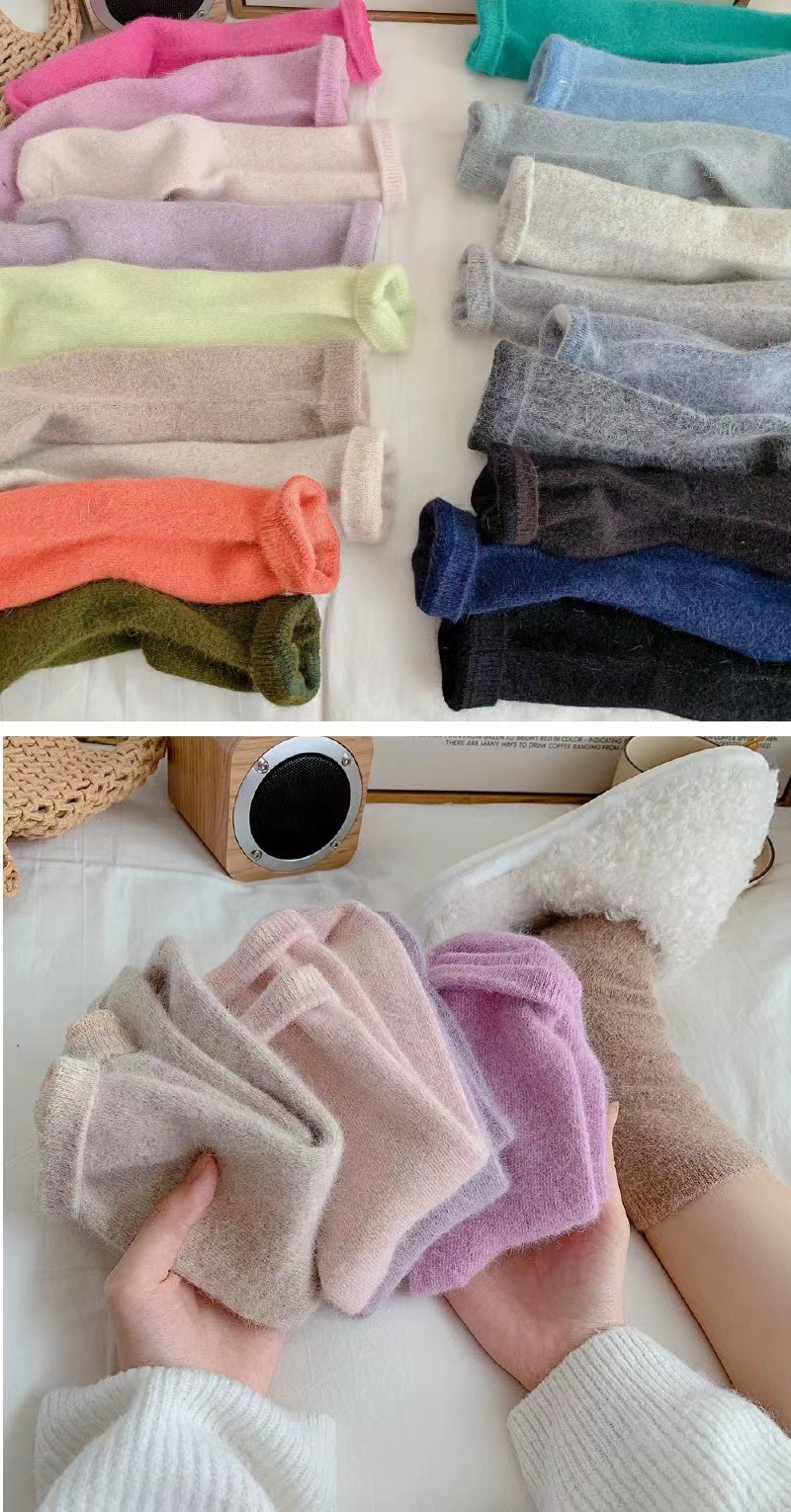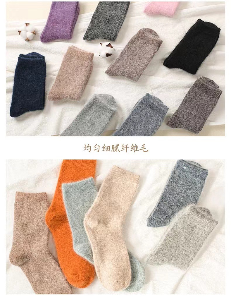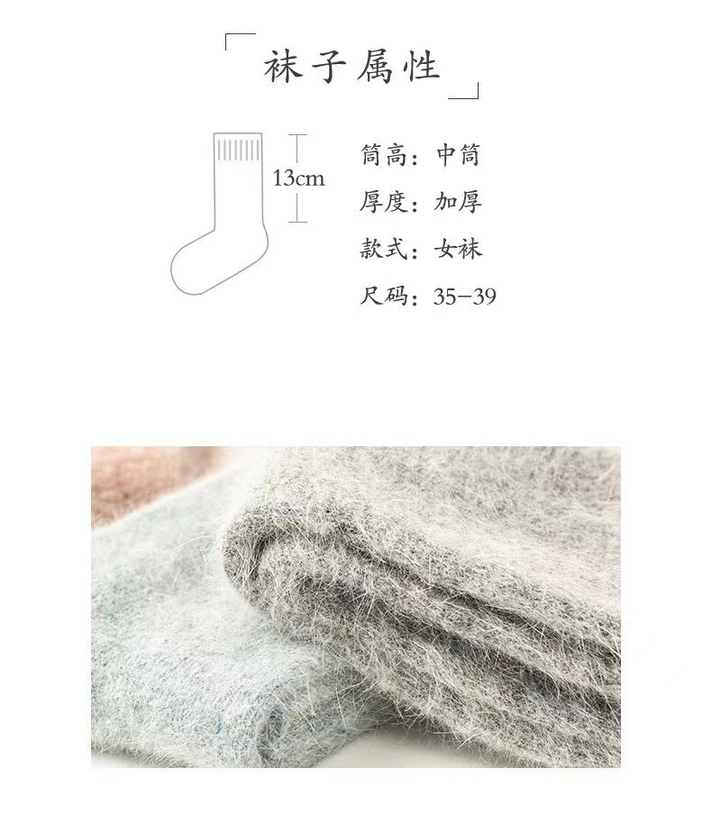 袜子女秋冬季保暖安哥拉兔毛袜加绒加厚纯色羊毛袜冬季百搭堆堆袜 投诉