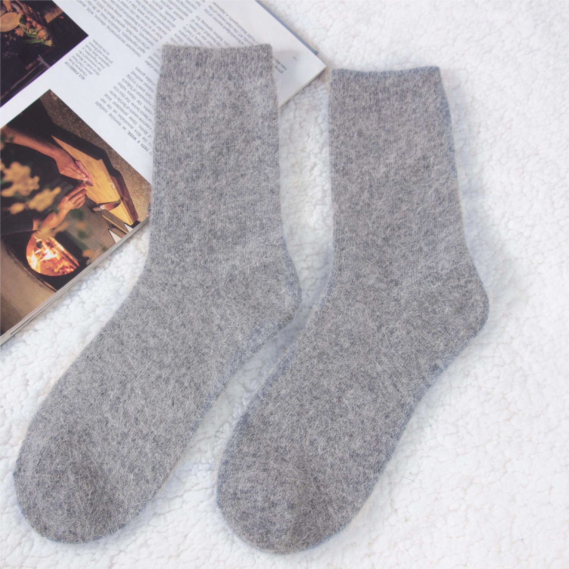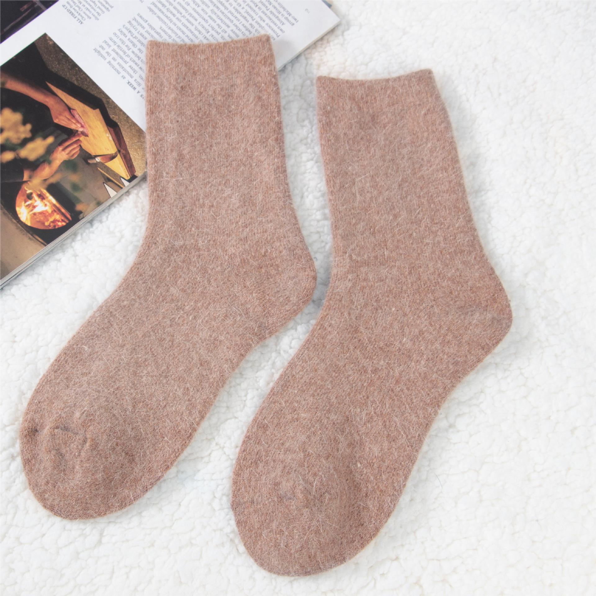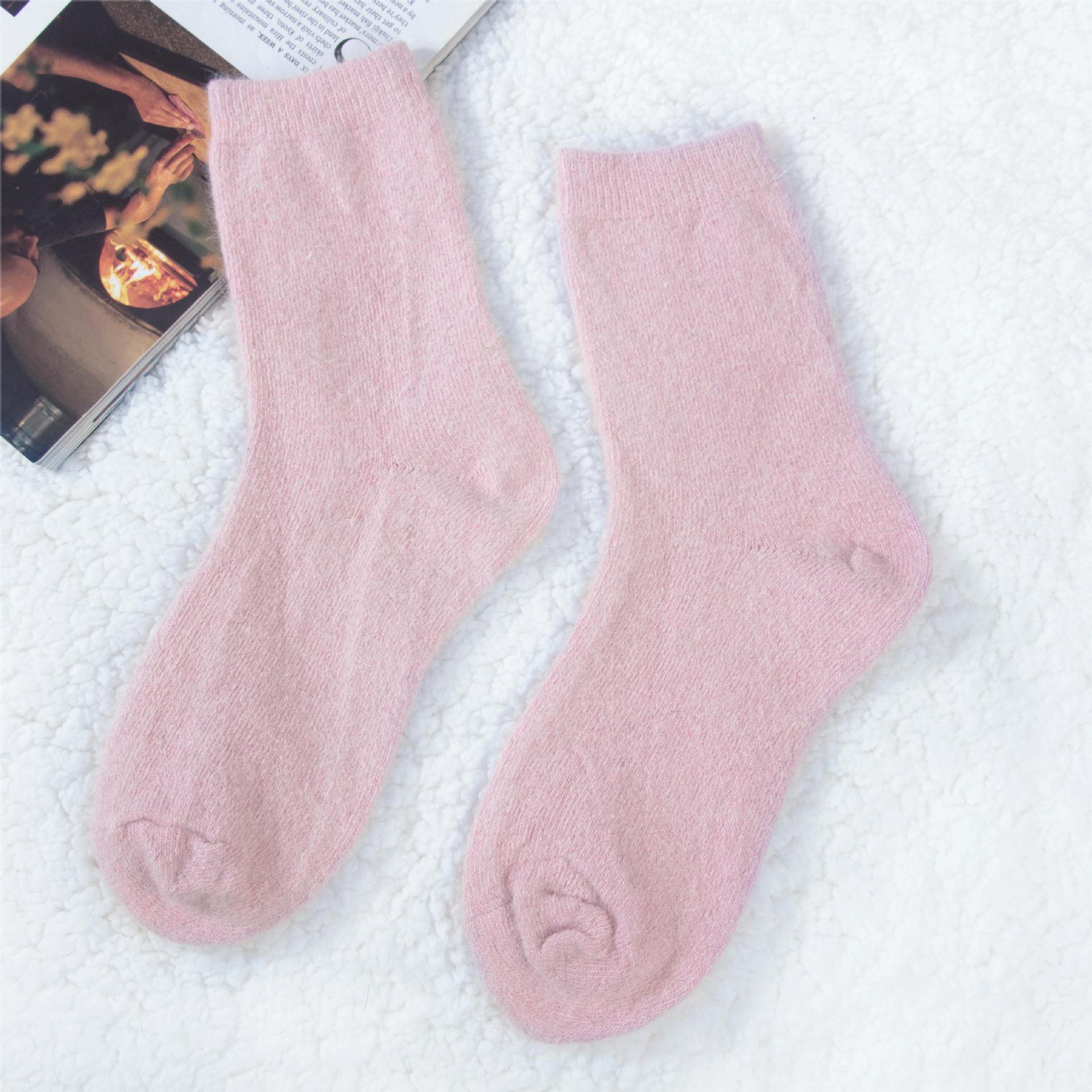 袜子女秋冬季保暖安哥拉兔毛袜加绒加厚纯色羊毛袜冬季百搭堆堆袜 投诉