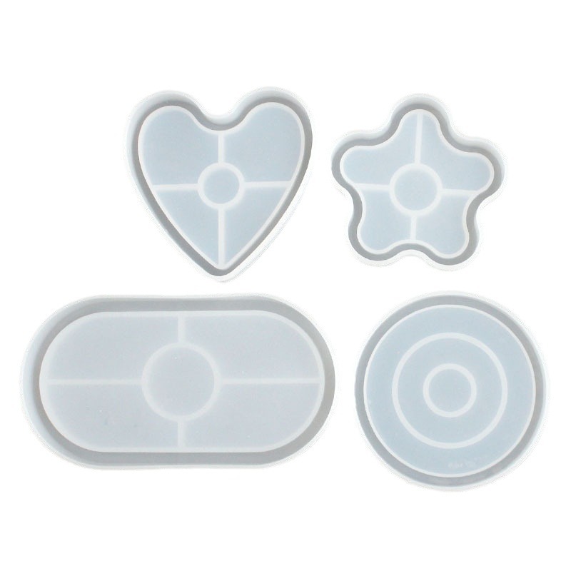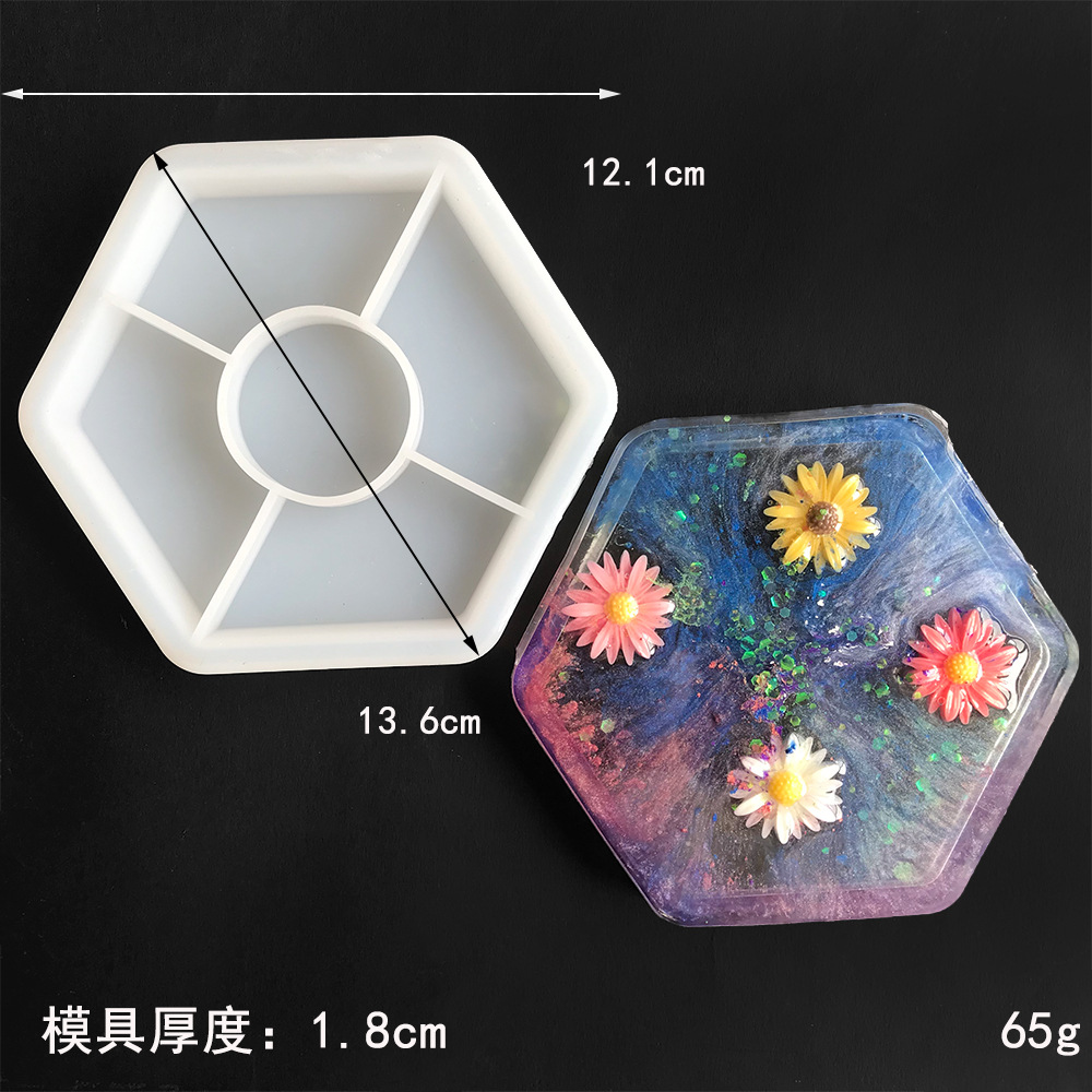 品名:DIY水晶滴胶5款六边方形花盘底座茶杯垫模具硅胶梅花爱心吊坠