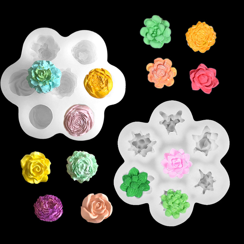 跨境情人母亲节DIY玫瑰牡丹花朵蛋糕装饰翻糖烘焙巧克力硅胶模具