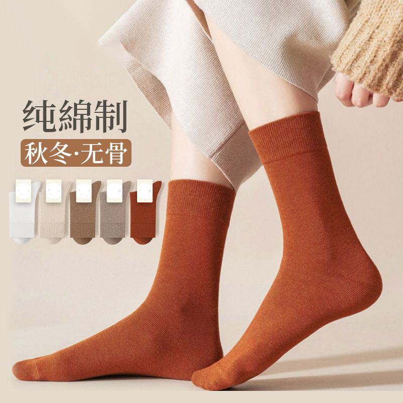 袜子女纯棉秋冬无骨全棉100女士中筒袜子2024新款防臭吸汗中筒袜