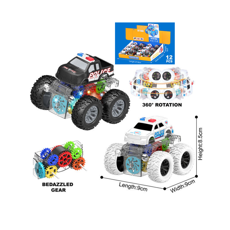 | 品名:12PCS双惯性旋转特技牙轮警车带灯光 | |||