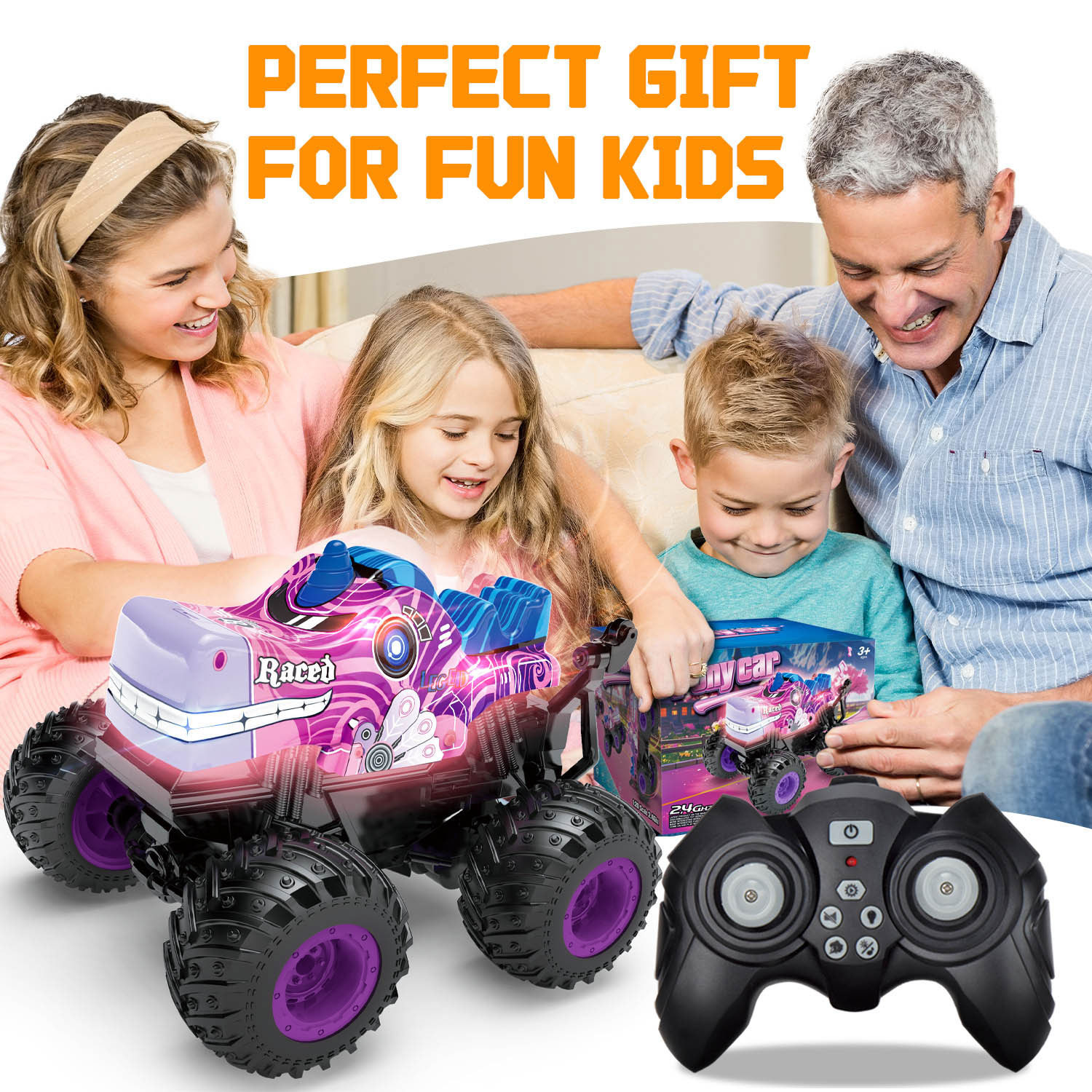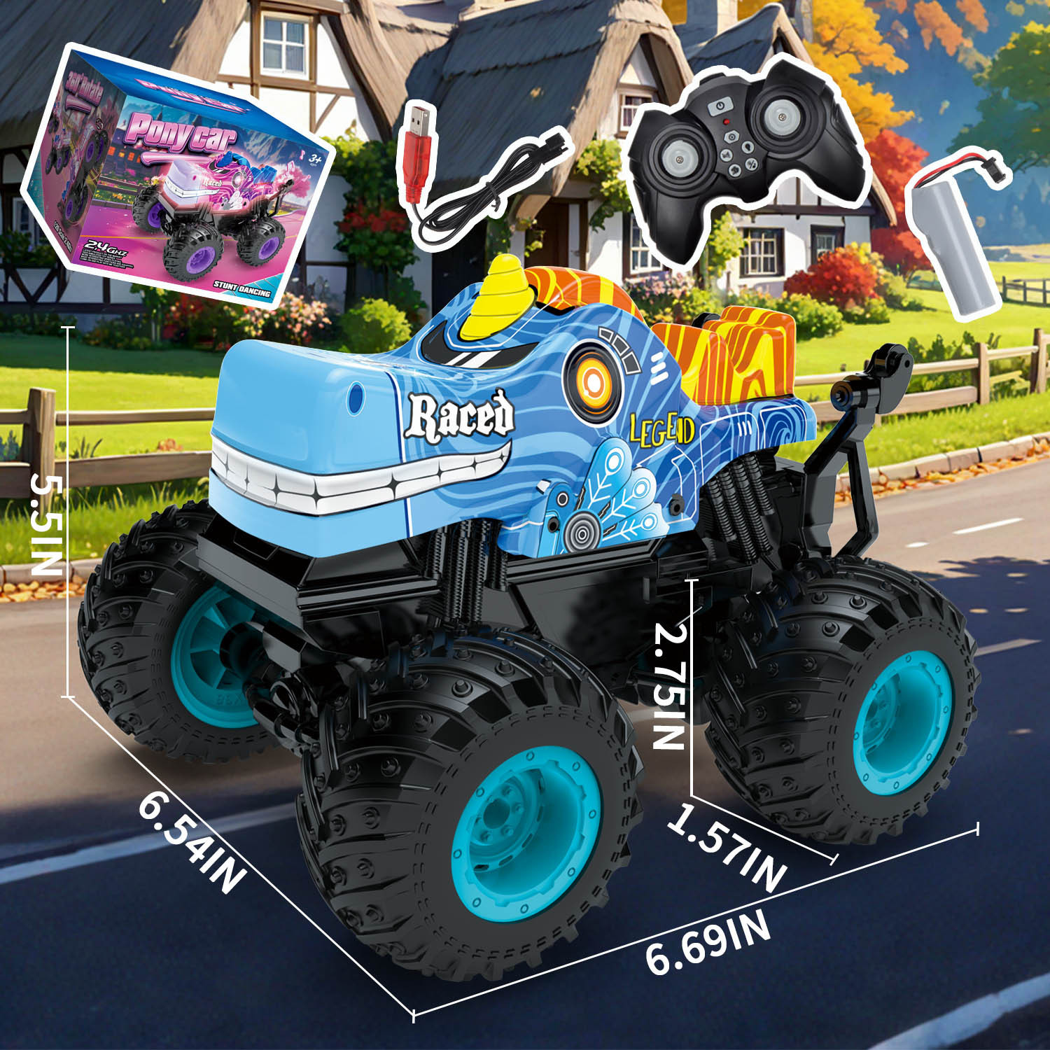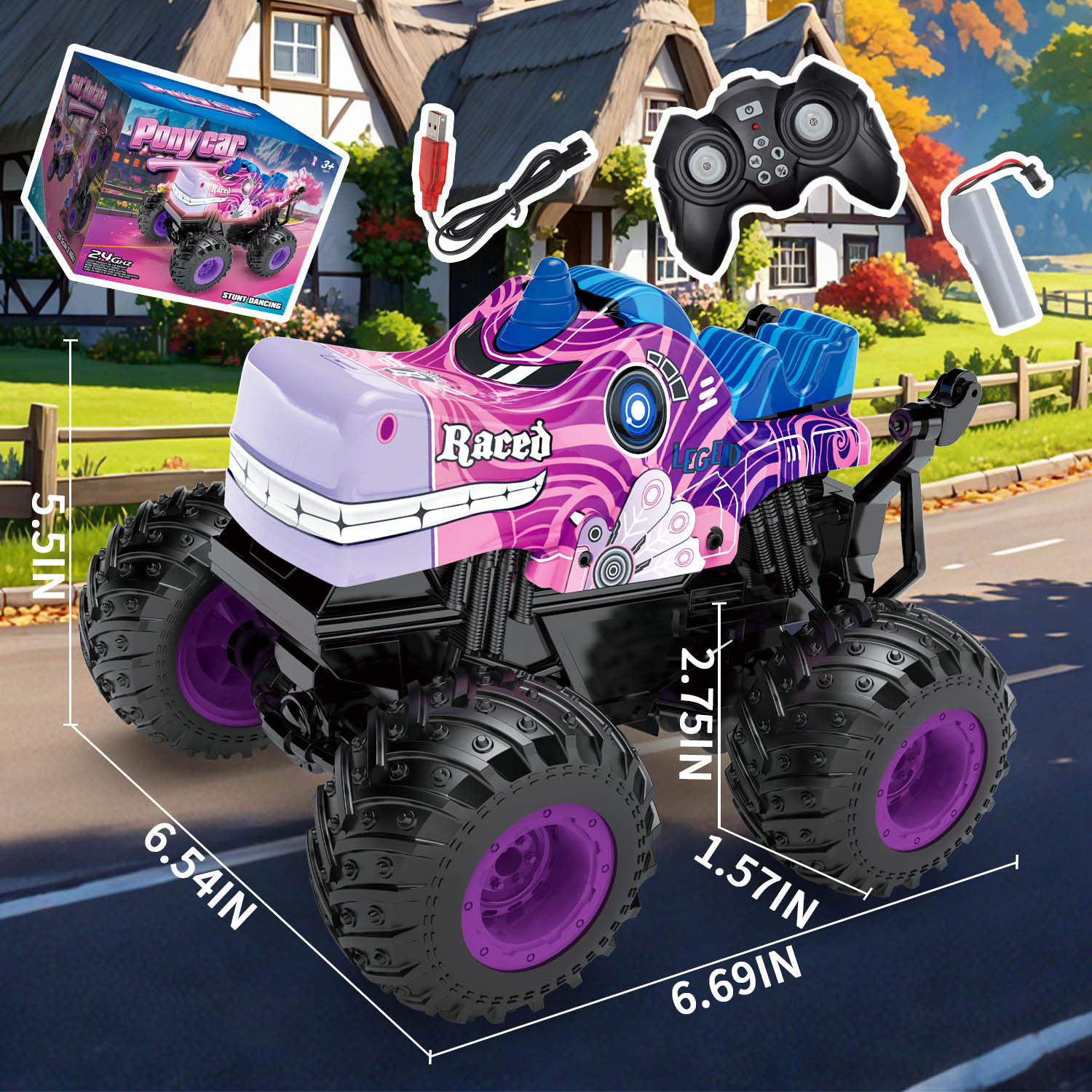产品清单:遥控车*1,遥控器*1,车身锂电池*1,USB充电线*1,螺丝刀*1,英文说明书*1