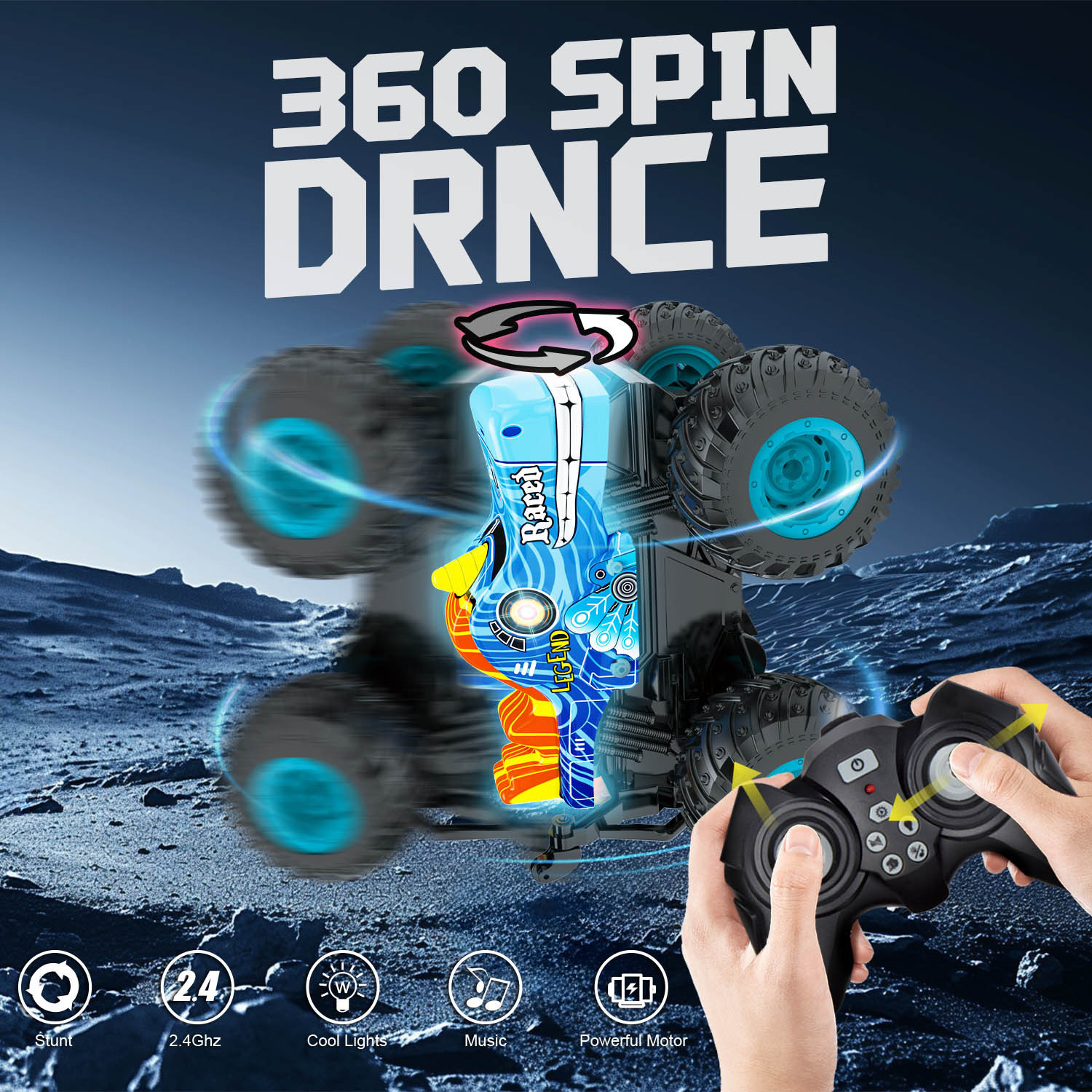 功能:灯光音乐、直立、360旋转、左转、右转、前进、后退。