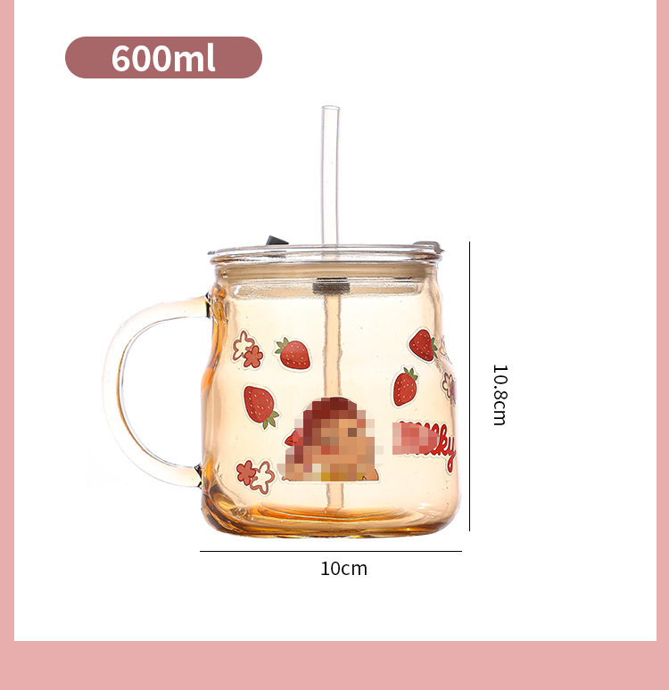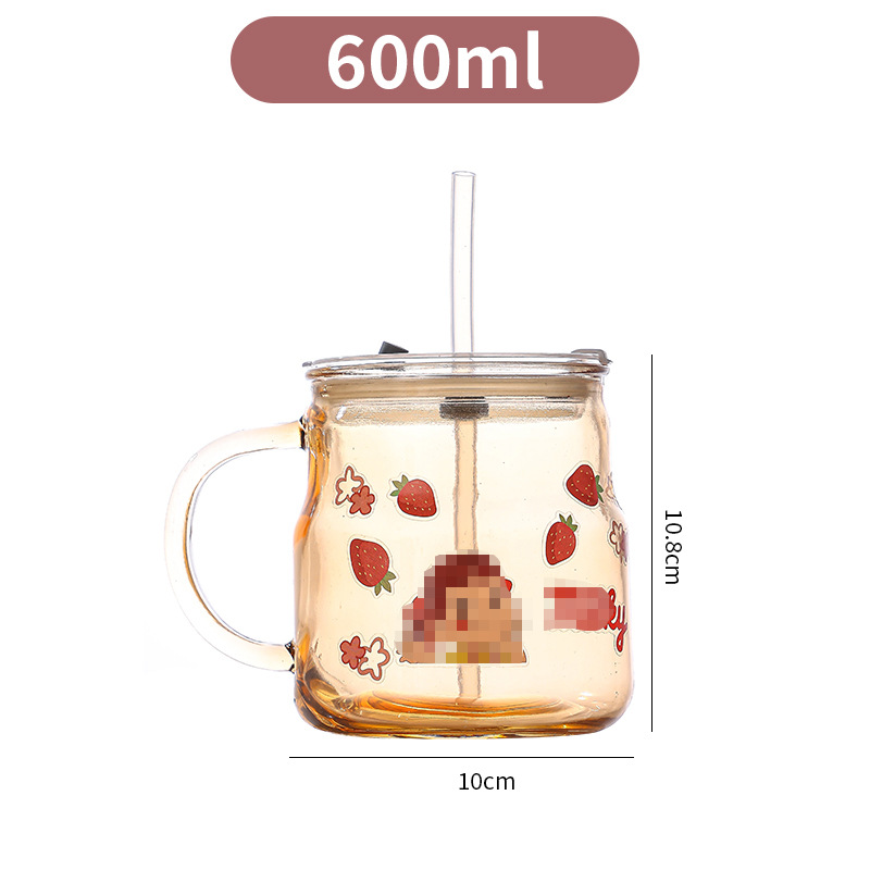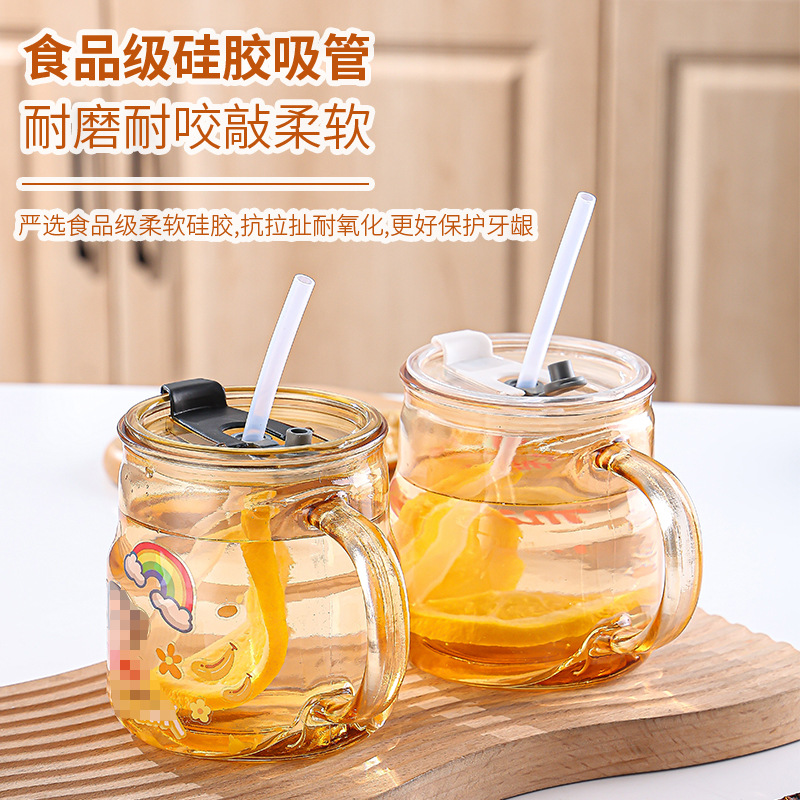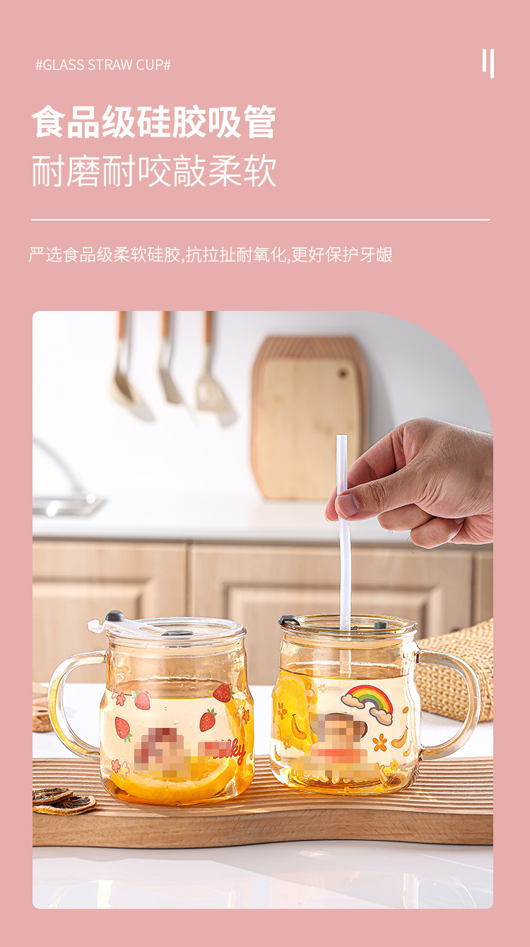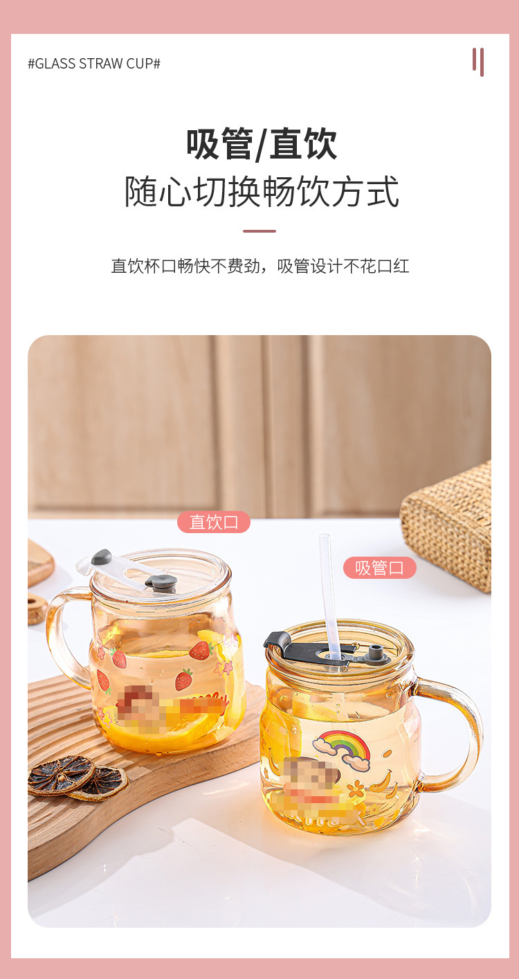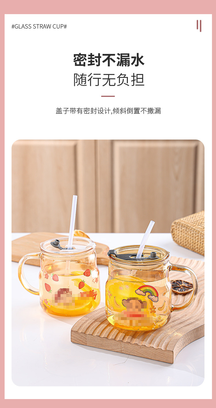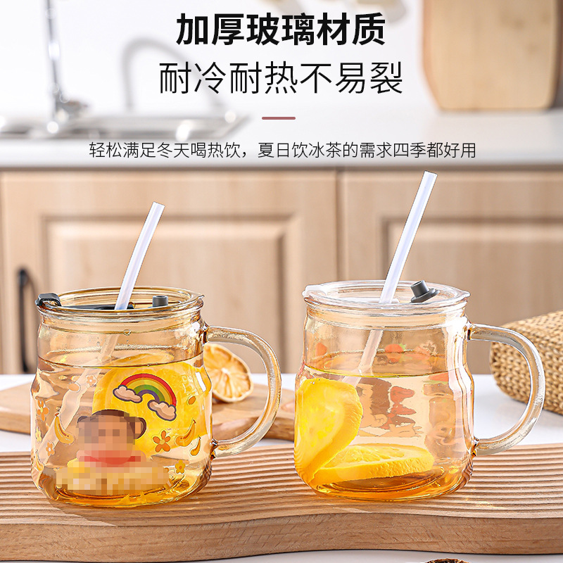 创意卡通贴纸马克杯家用泡茶带盖吸管杯可爱办公室大容量水杯批发