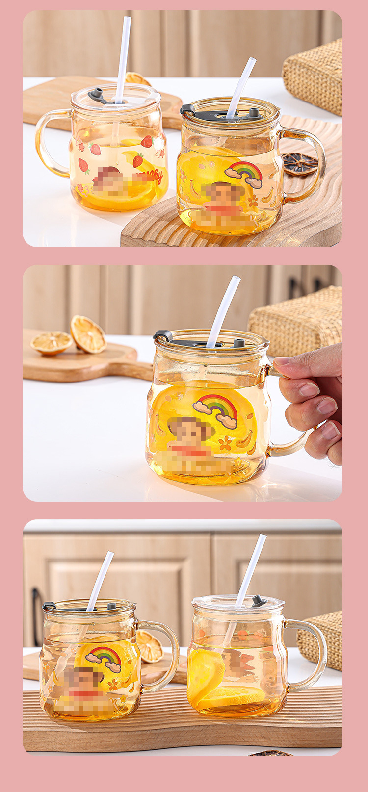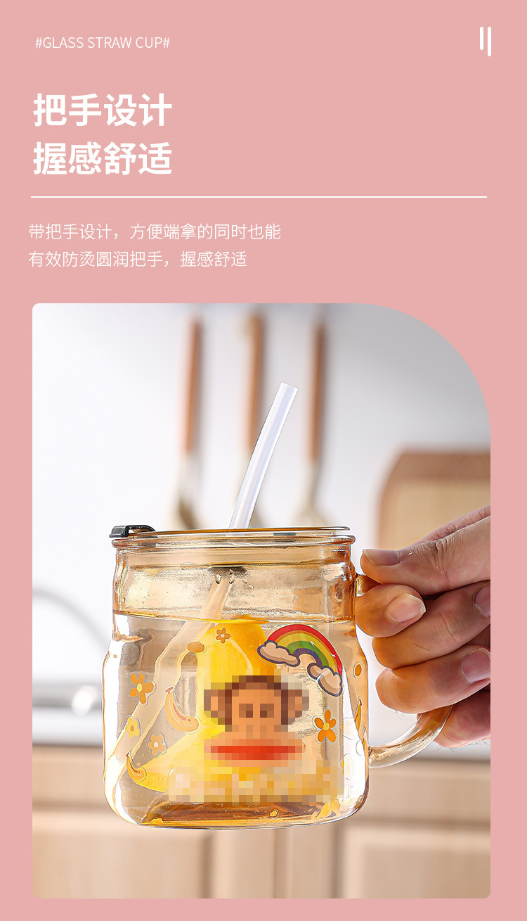 创意卡通贴纸马克杯家用泡茶带盖吸管杯可爱办公室大容量水杯批发 投诉