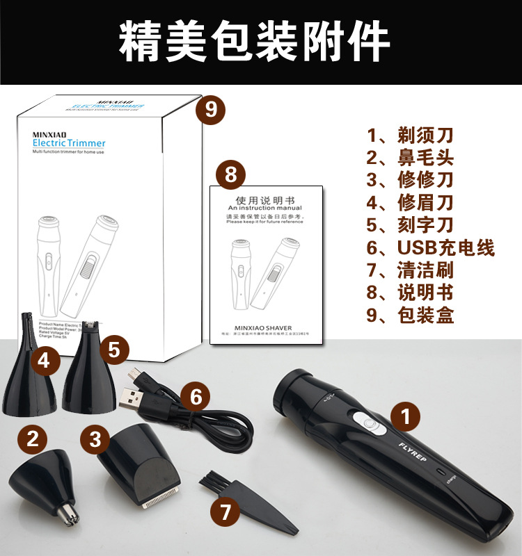 多功能迷你剃须刀,USB线充电式