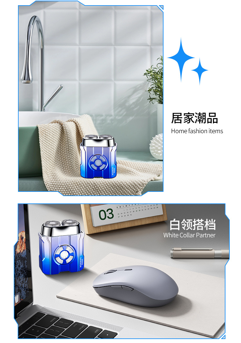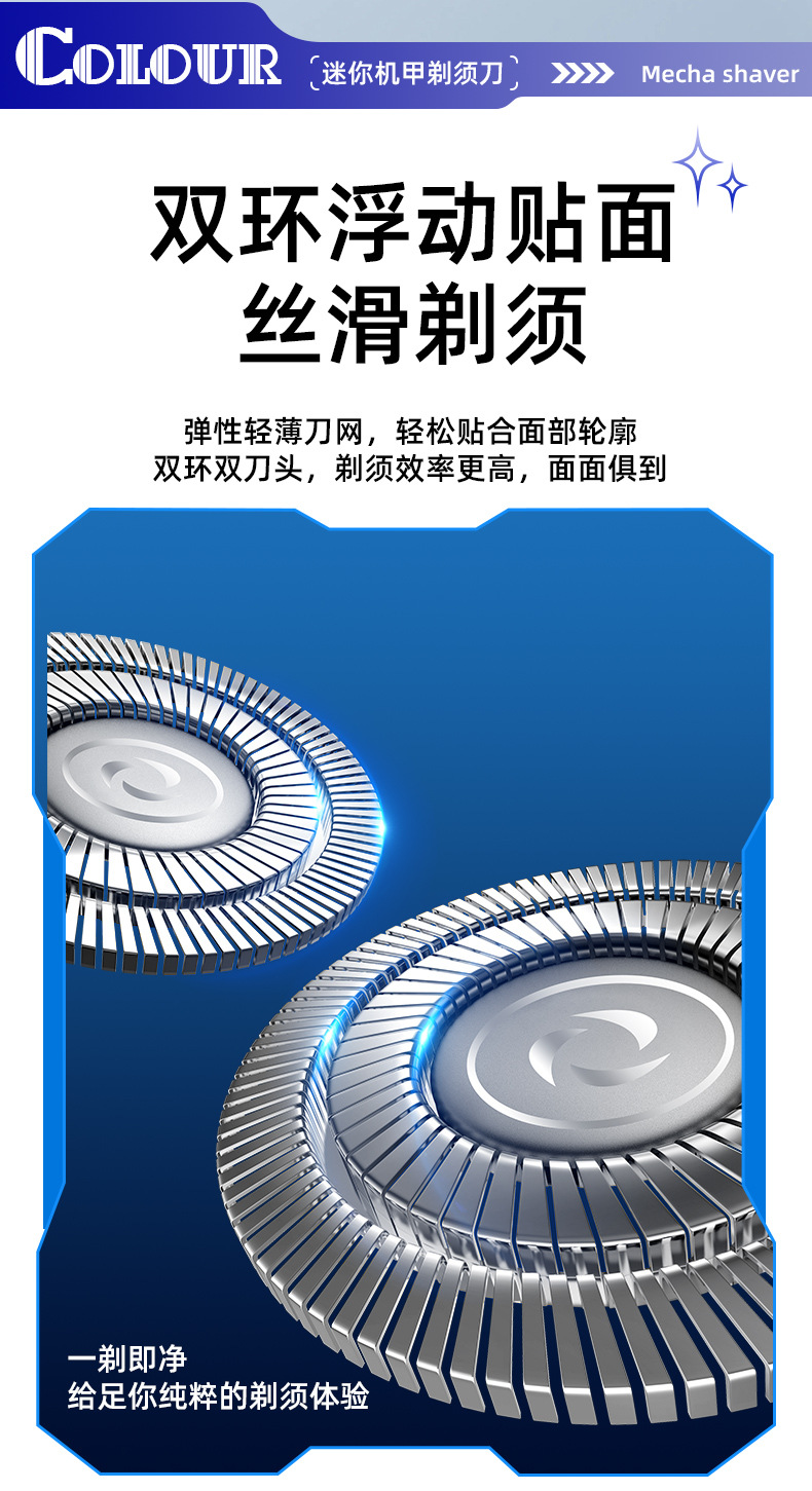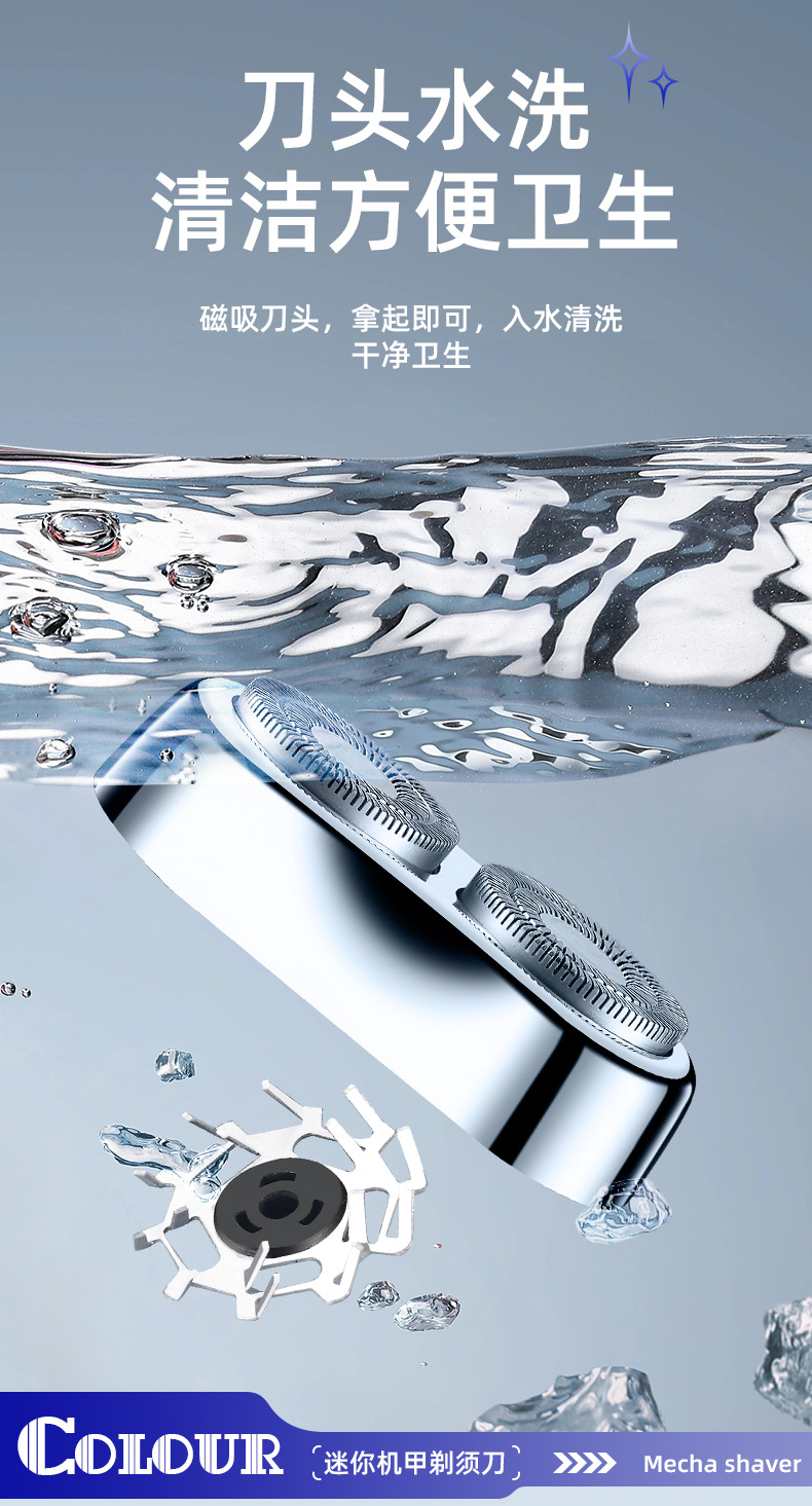 5. 浮动双刀头,干湿双剃。