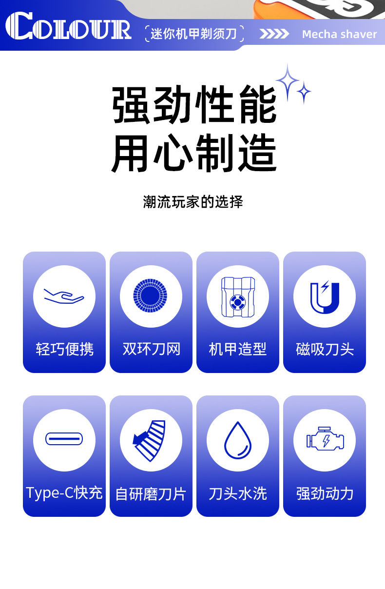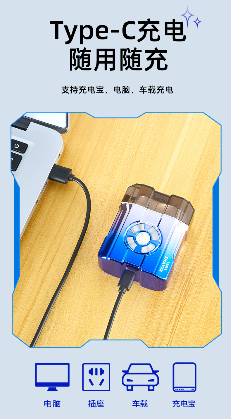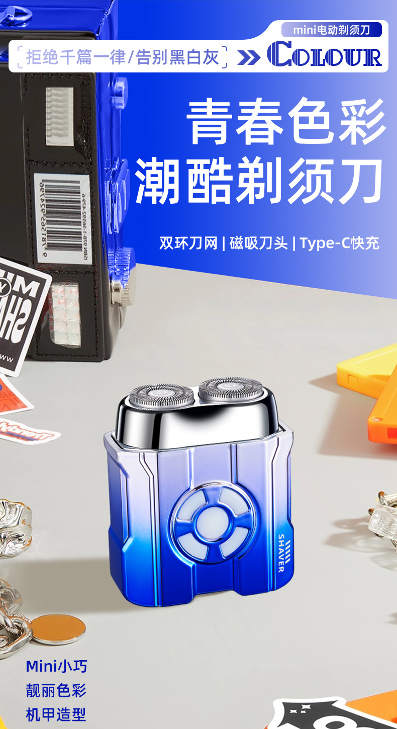 5. 浮动双刀头,干湿双剃。