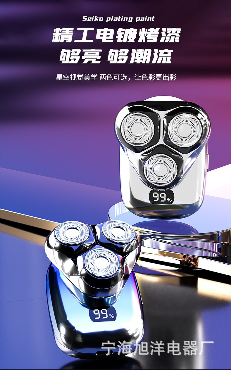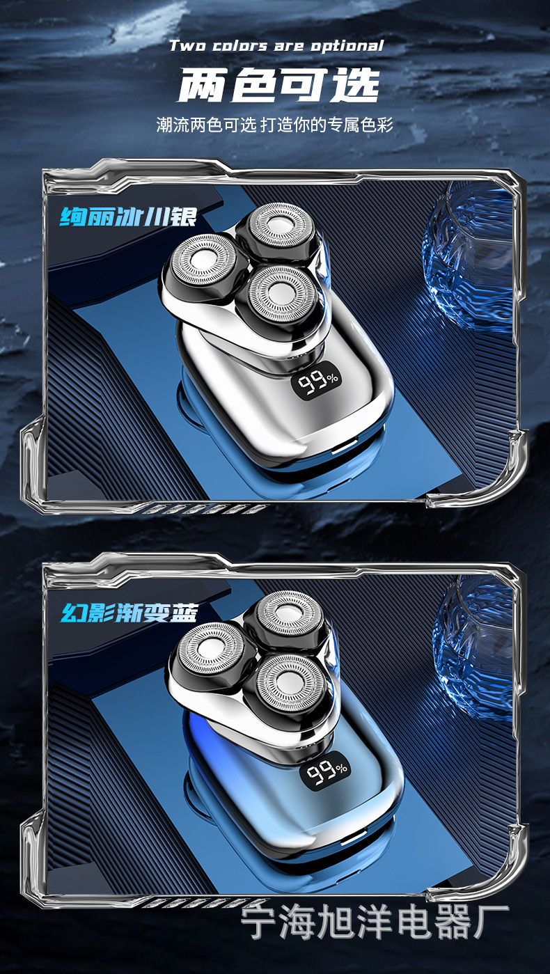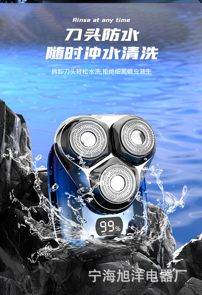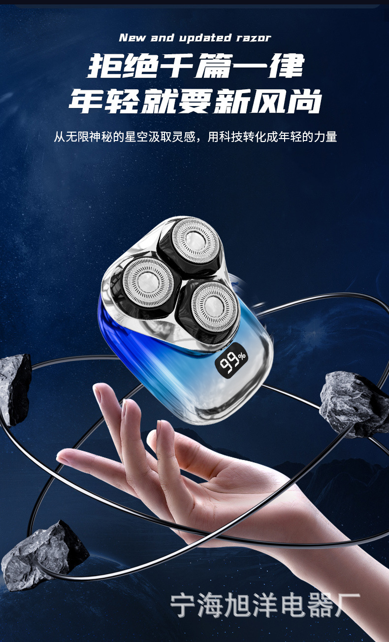 三头方块剃须刀,采用大厂品牌同款刀片刀网,600容量聚合物电池。拥有噪音小,动力强,剃须干净等优点。保证品质,可微定制