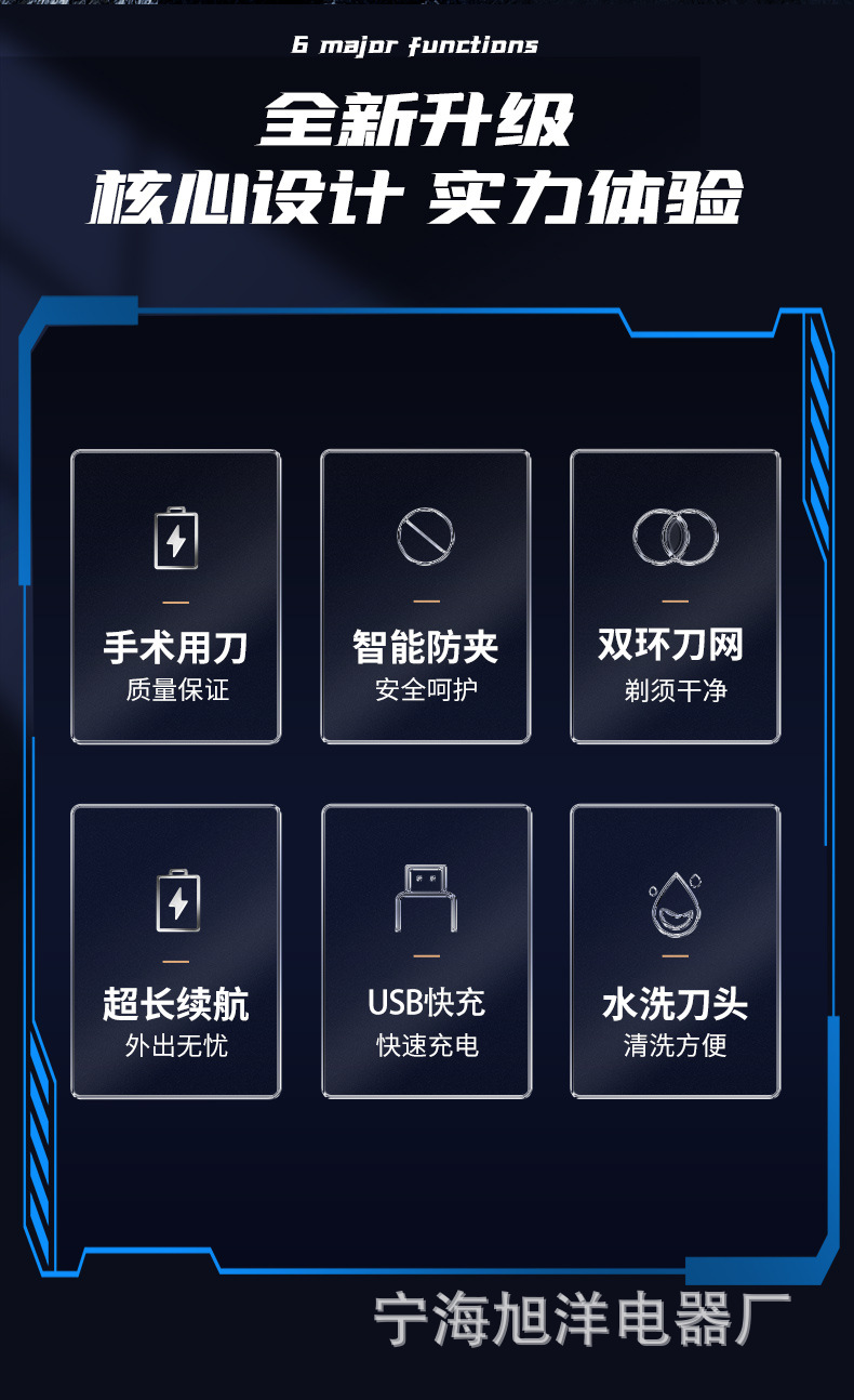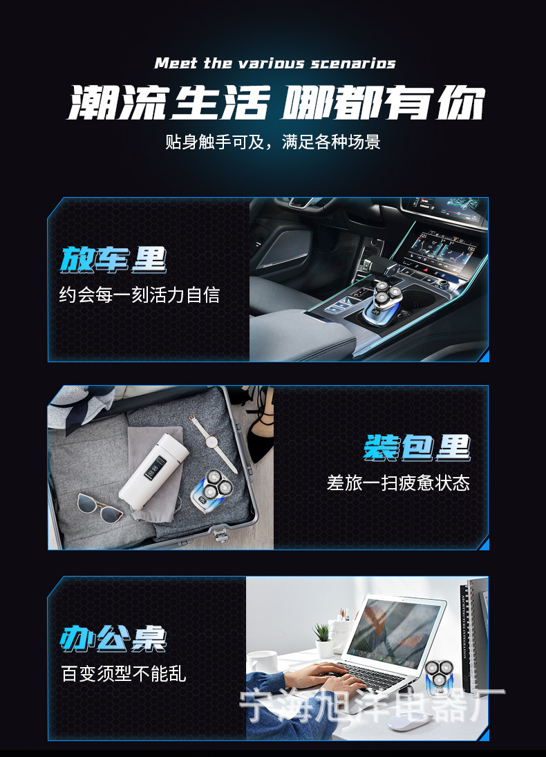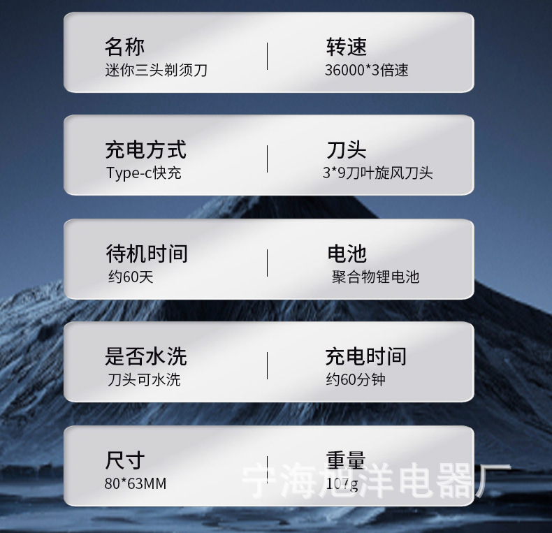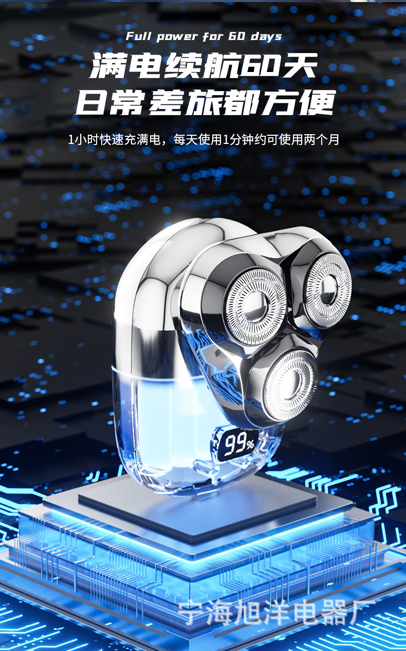 三头方块剃须刀,采用大厂品牌同款刀片刀网,600容量聚合物电池。拥有噪音小,动力强,剃须干净等优点。保证品质,可微定制
