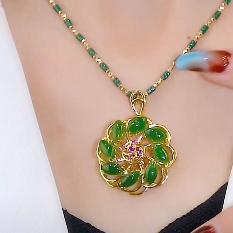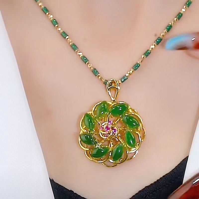 2023年新款幸运花吊合金坠女项链苹果绿高级感时尚奢侈设计饰 投诉