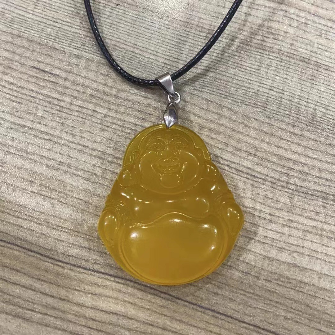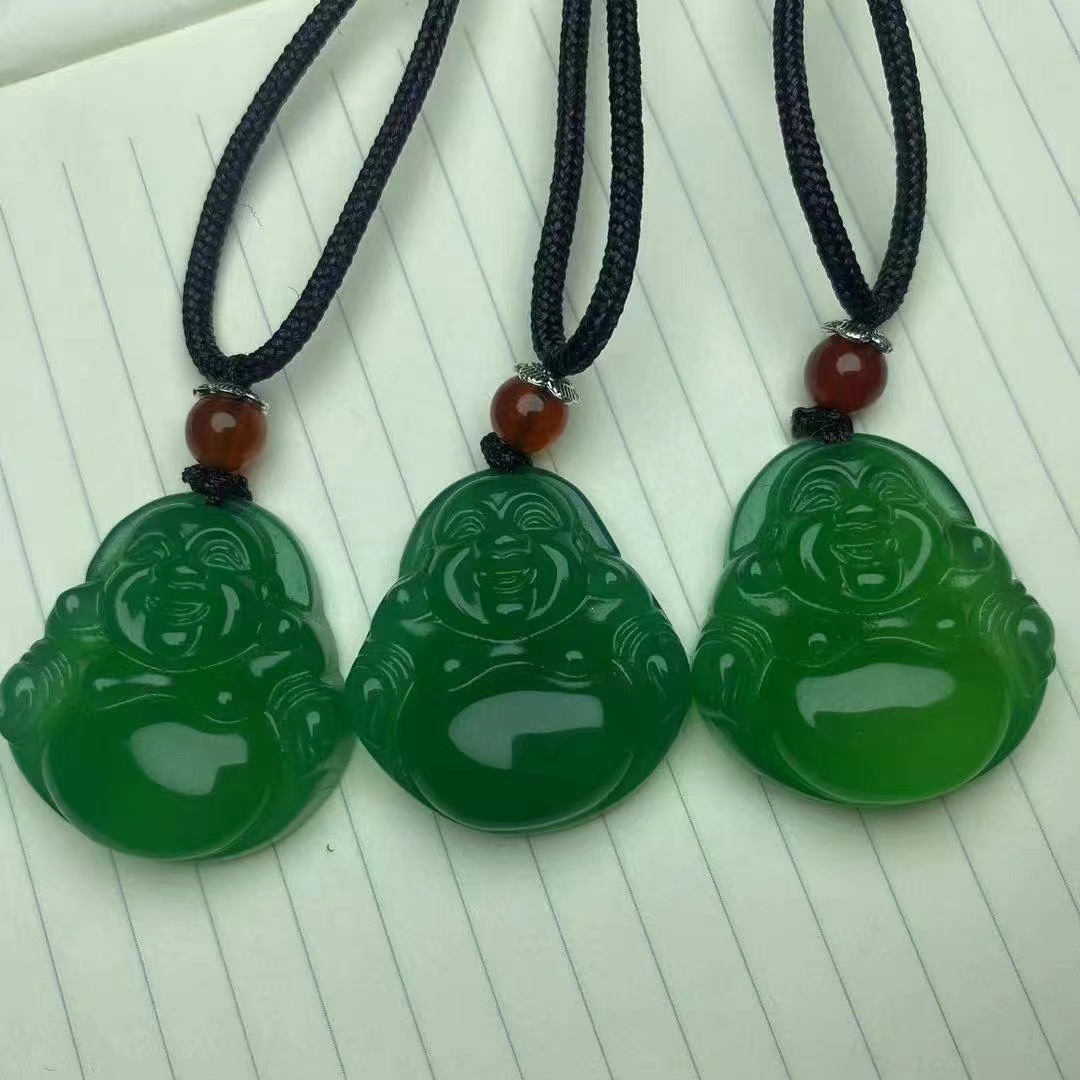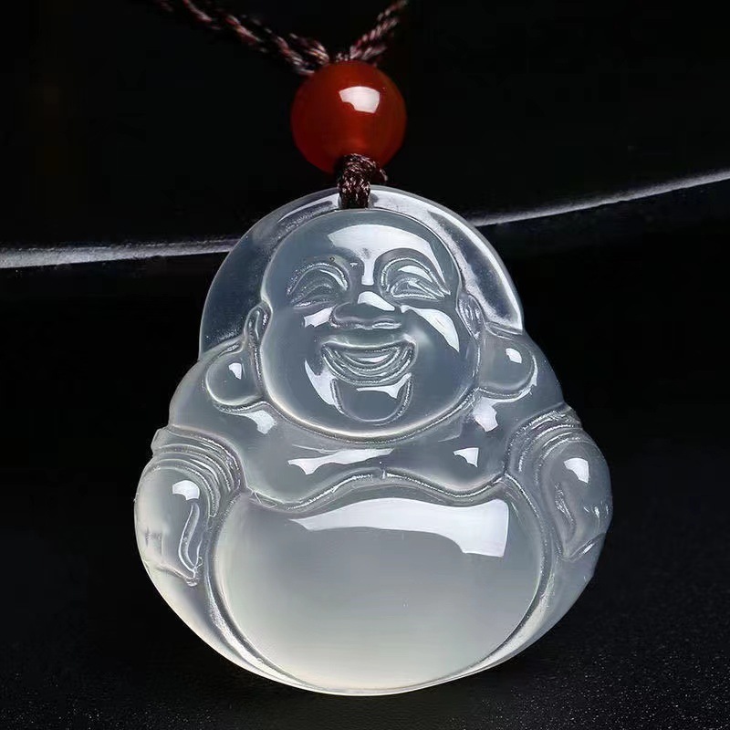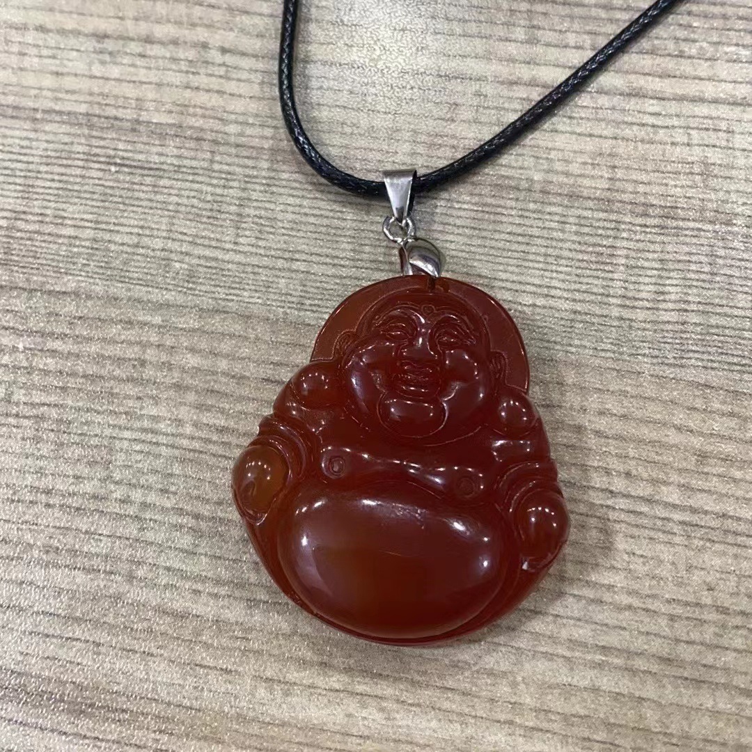 冰种白玉髓弥勒佛项链 A货红玛瑙佛公黄玉髓佛吊坠直播货源批发