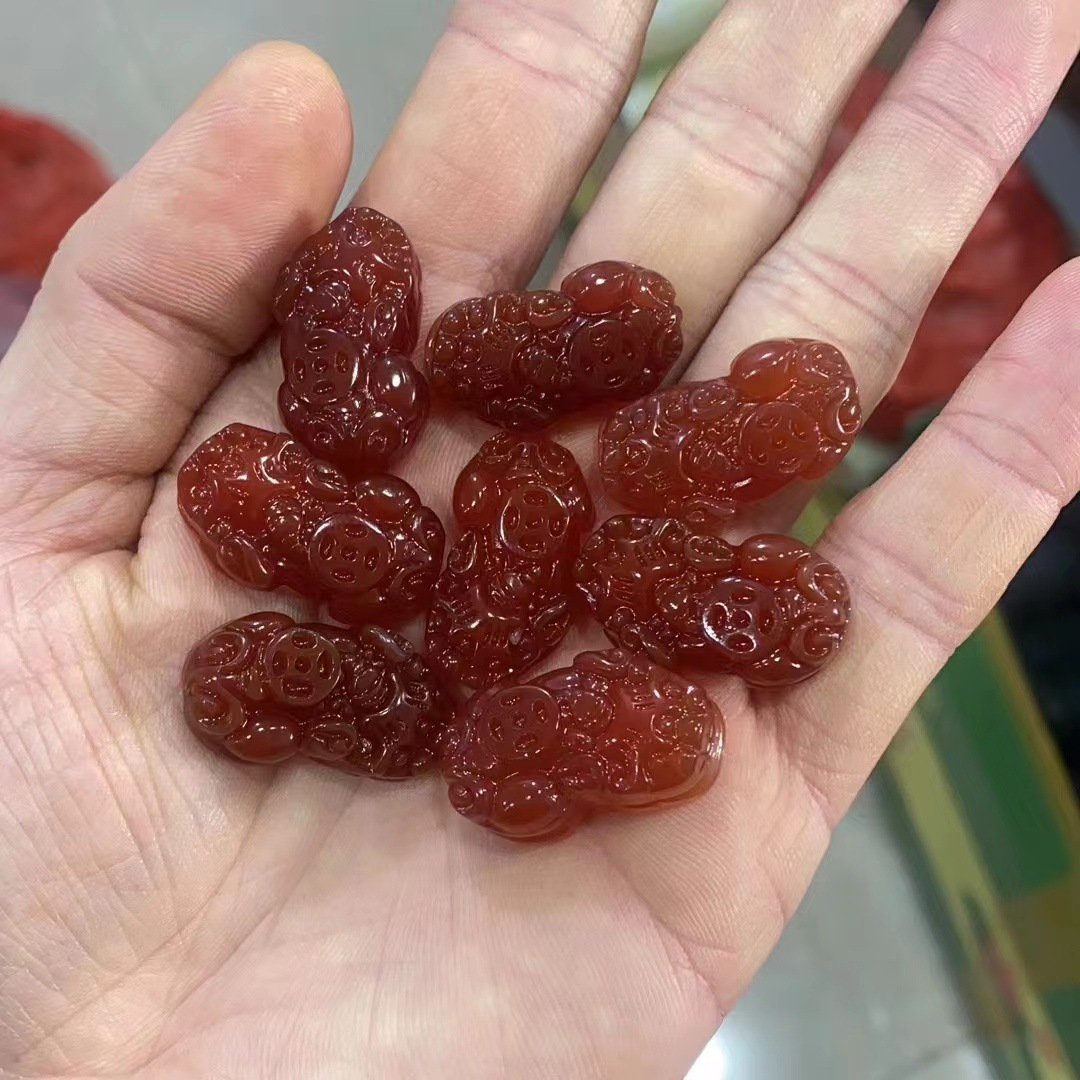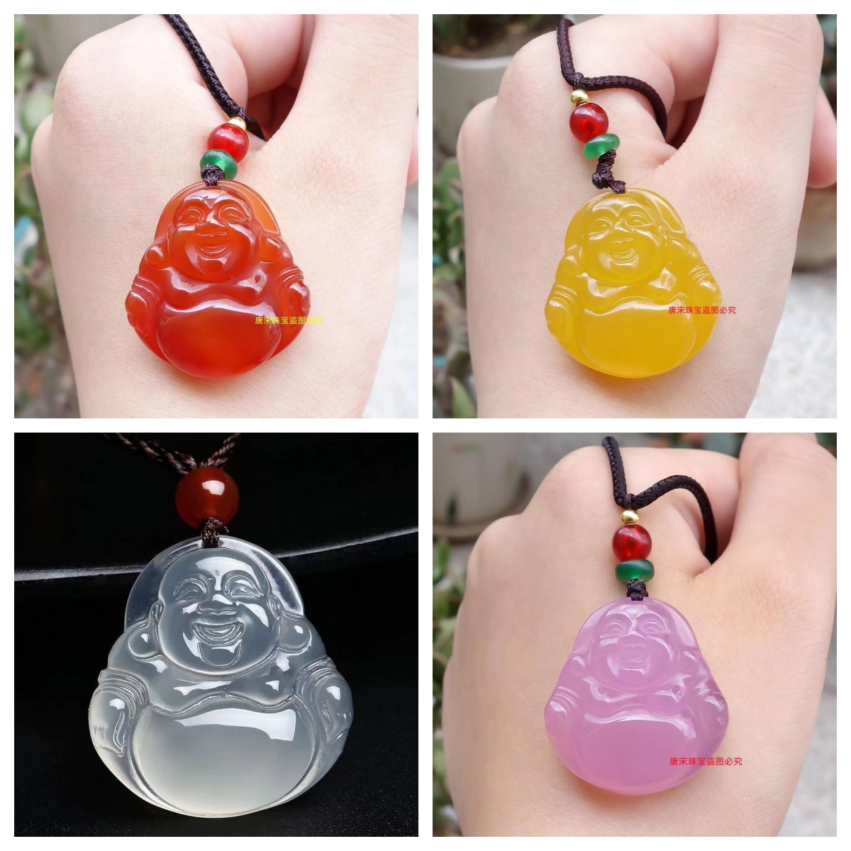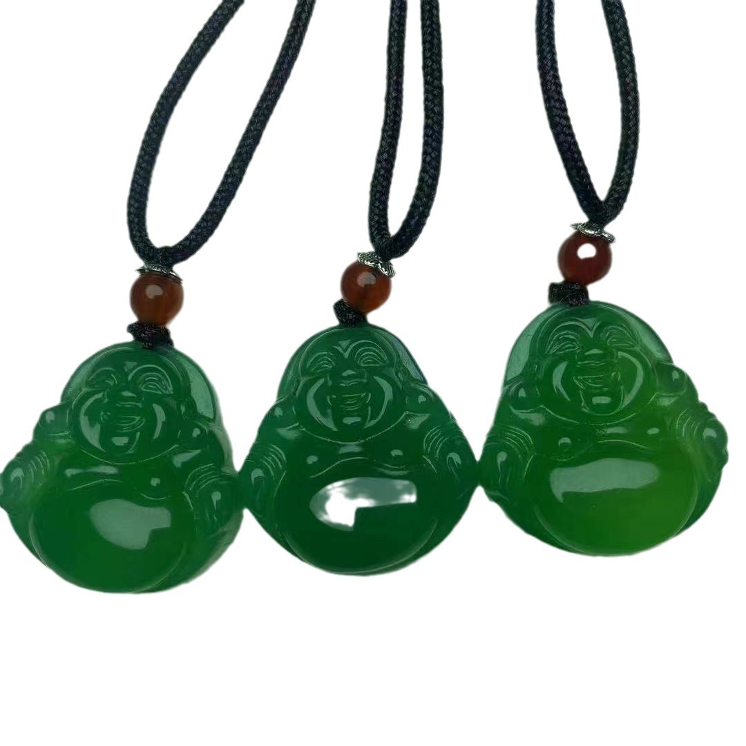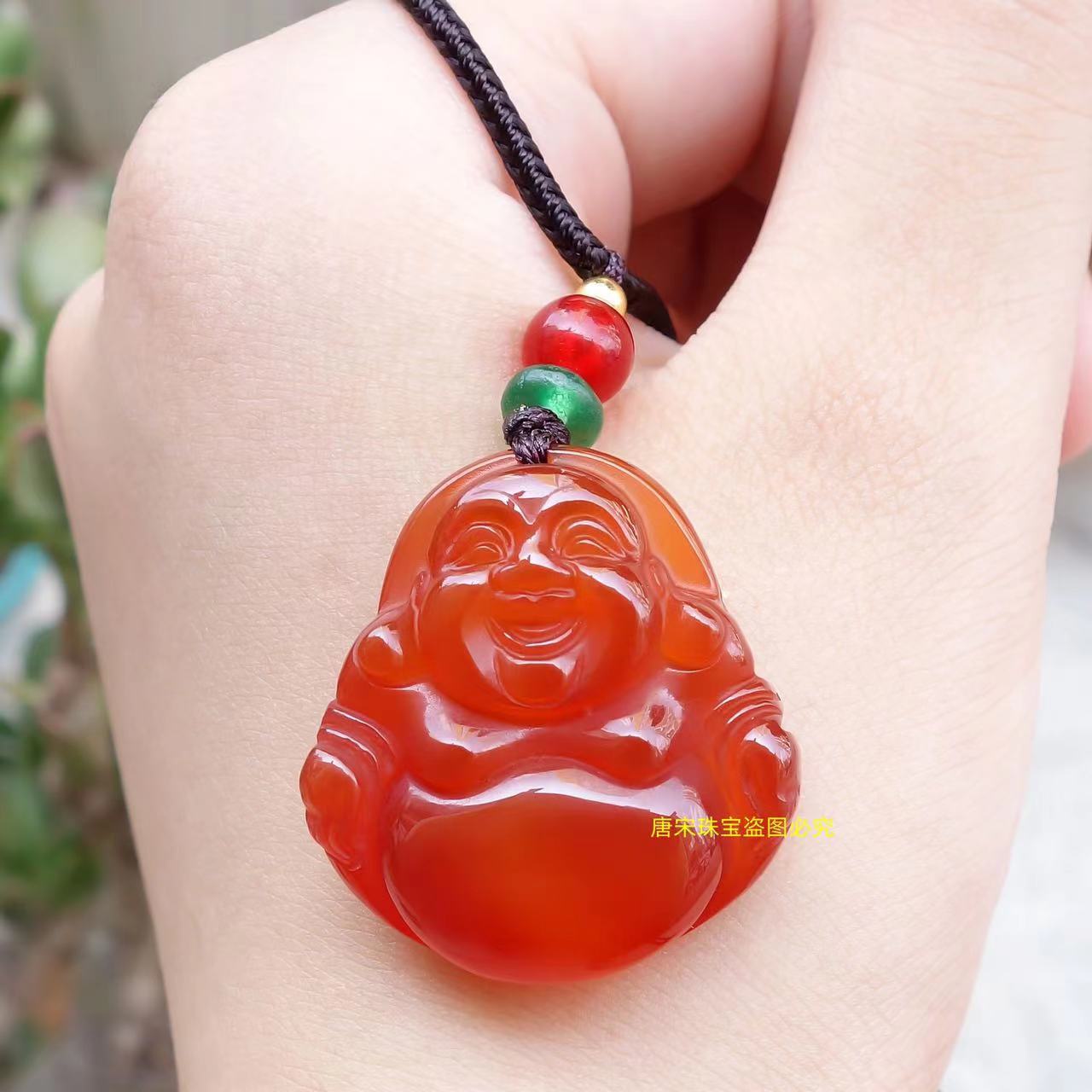 冰种白玉髓弥勒佛项链 A货红玛瑙佛公黄玉髓佛吊坠直播货源批发