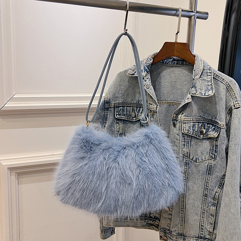 柔软毛绒包包女2024新款秋冬腋下包时尚百搭手提单肩包通勤毛毛包