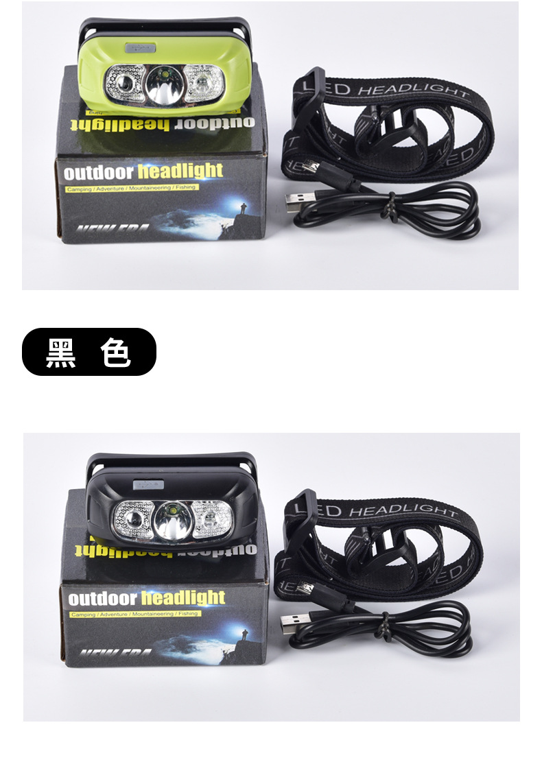 户外便携感应头灯 多功能塑料led强光头灯 充电夜钓头灯 饵灯防水 English | 投诉