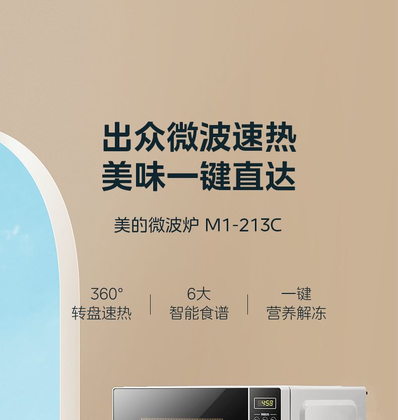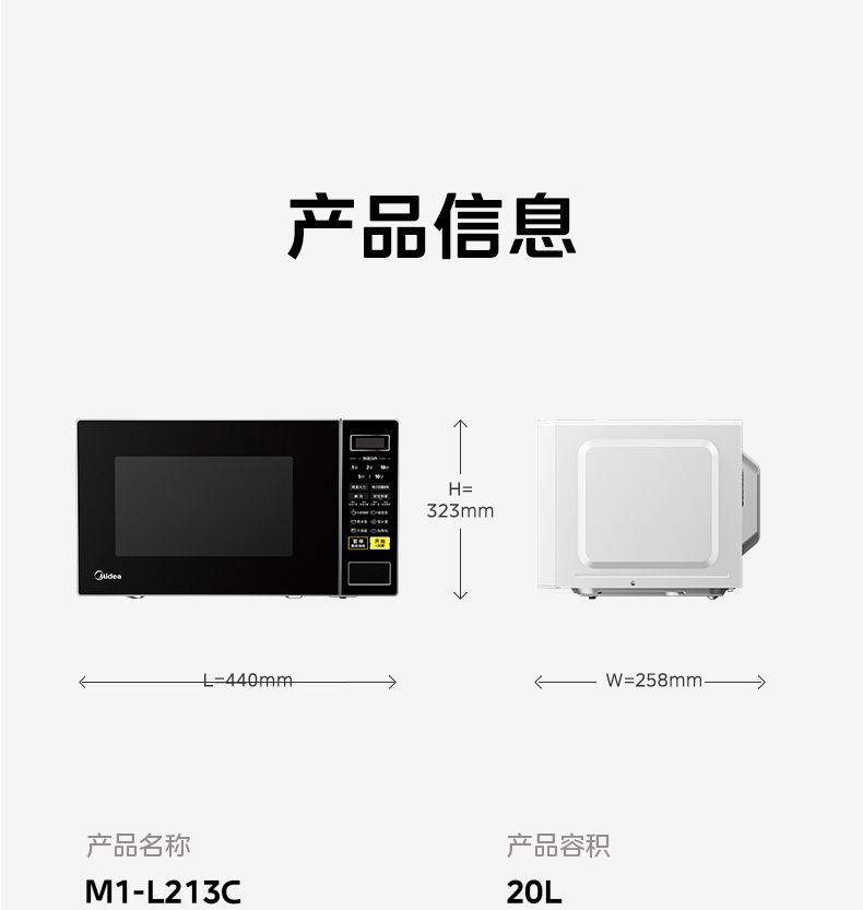 美的微波炉 家用小型20升转盘加热 智能菜单 一键解冻 M1-L213C【