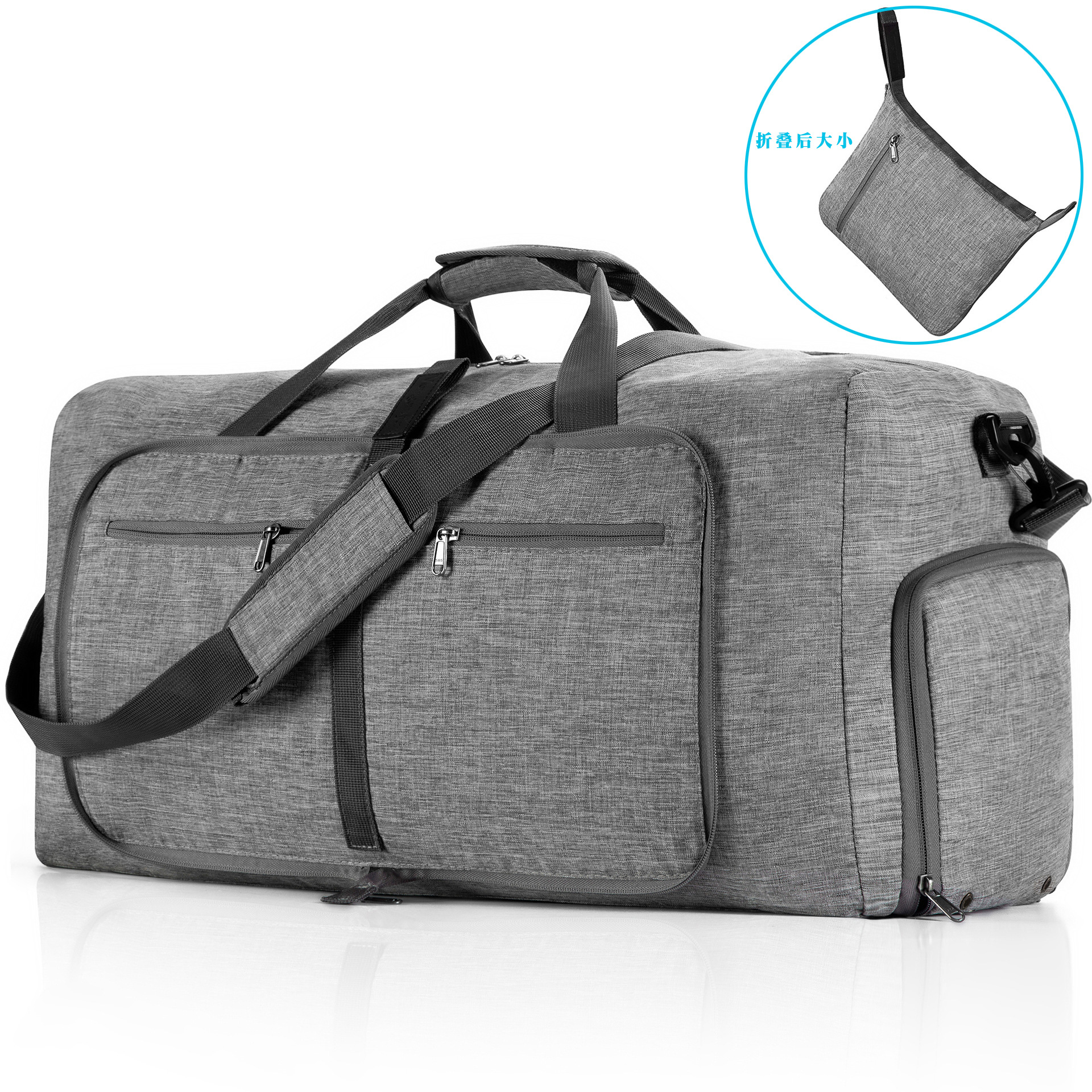 新款跨境可折叠手提旅行包大容量运动包高级感男百搭行李收纳包女 English | 投诉