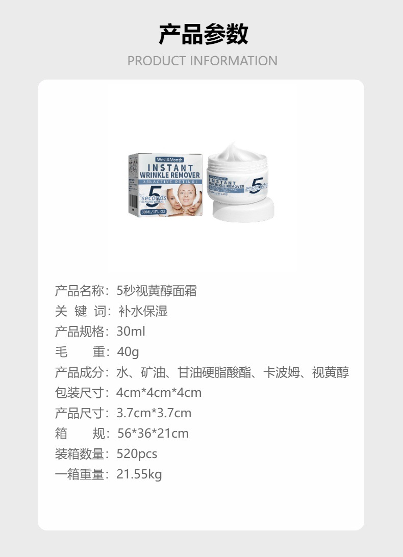 West Month 5秒视黄醇面霜 滋润补水面部皮肤护肤霜专供出口 English | 投诉