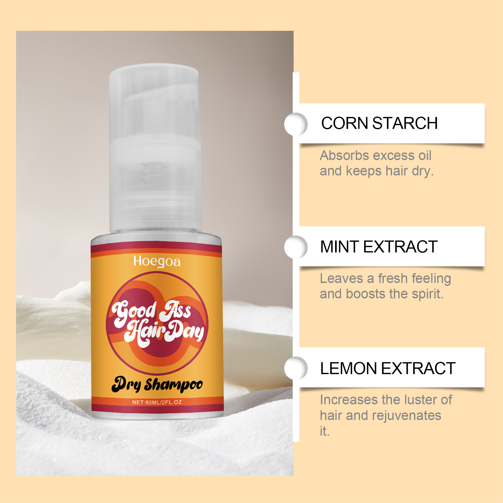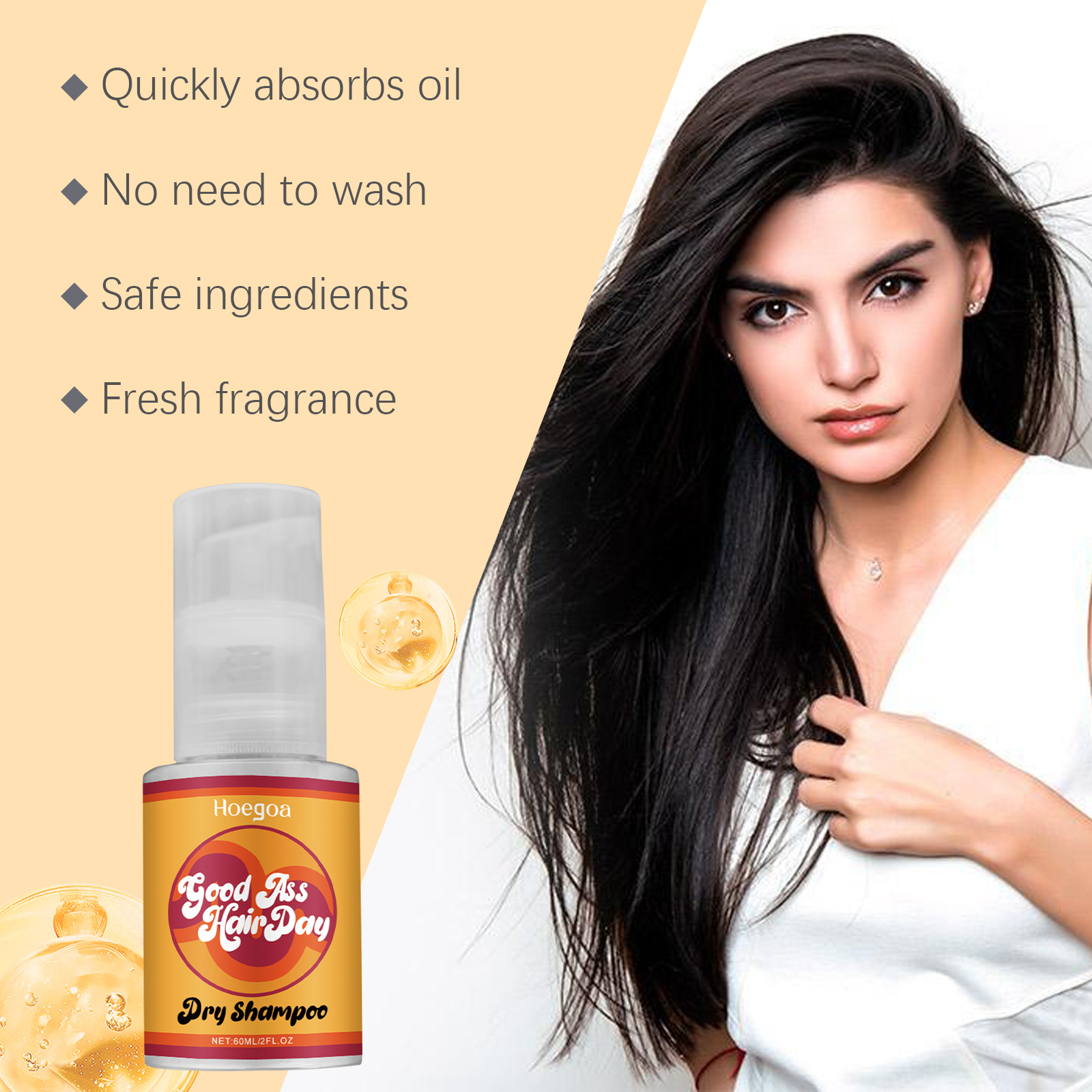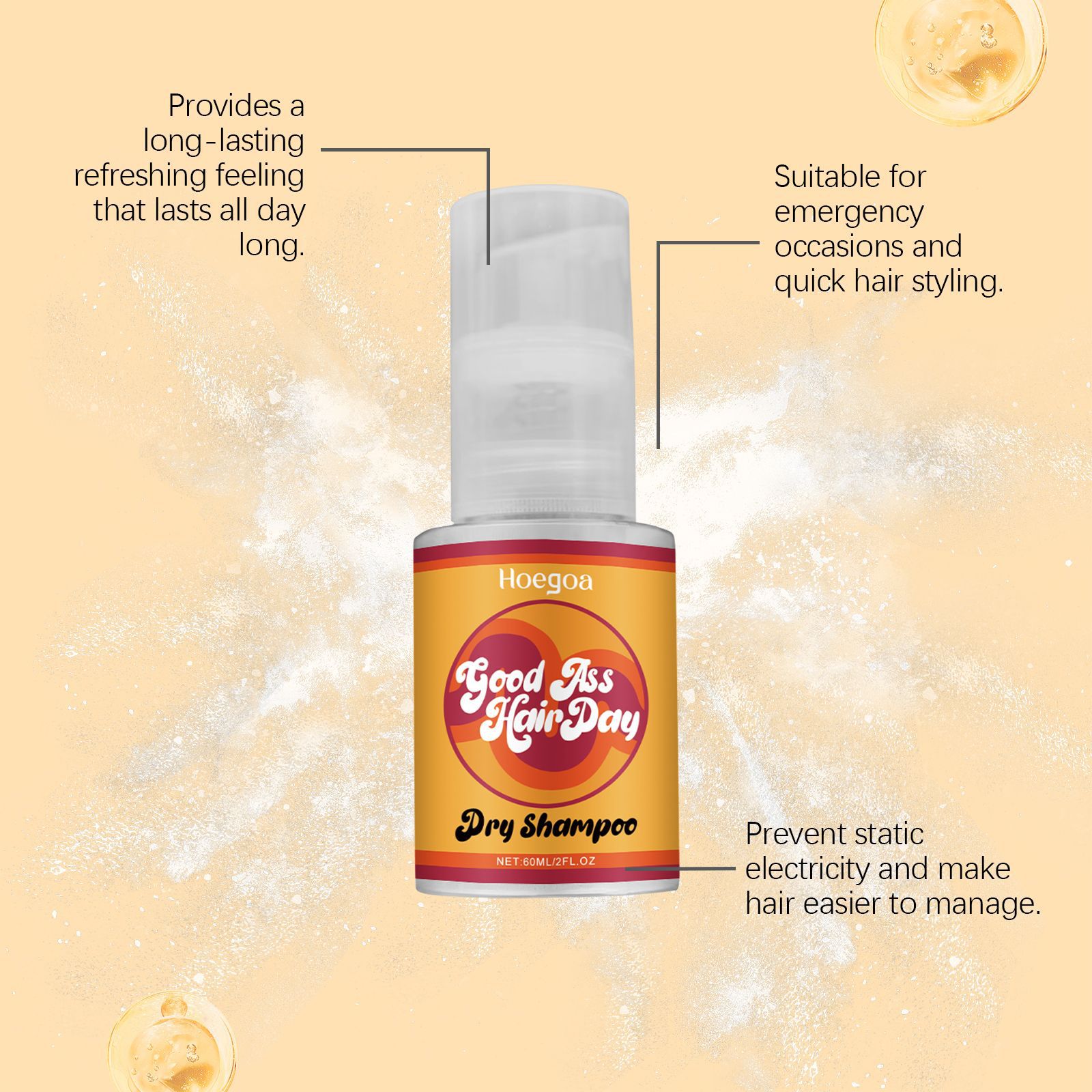 HOEGOA 免洗干发喷雾 头发干爽清爽修护头发柔顺光泽免洗喷雾专供出口 English | 投诉