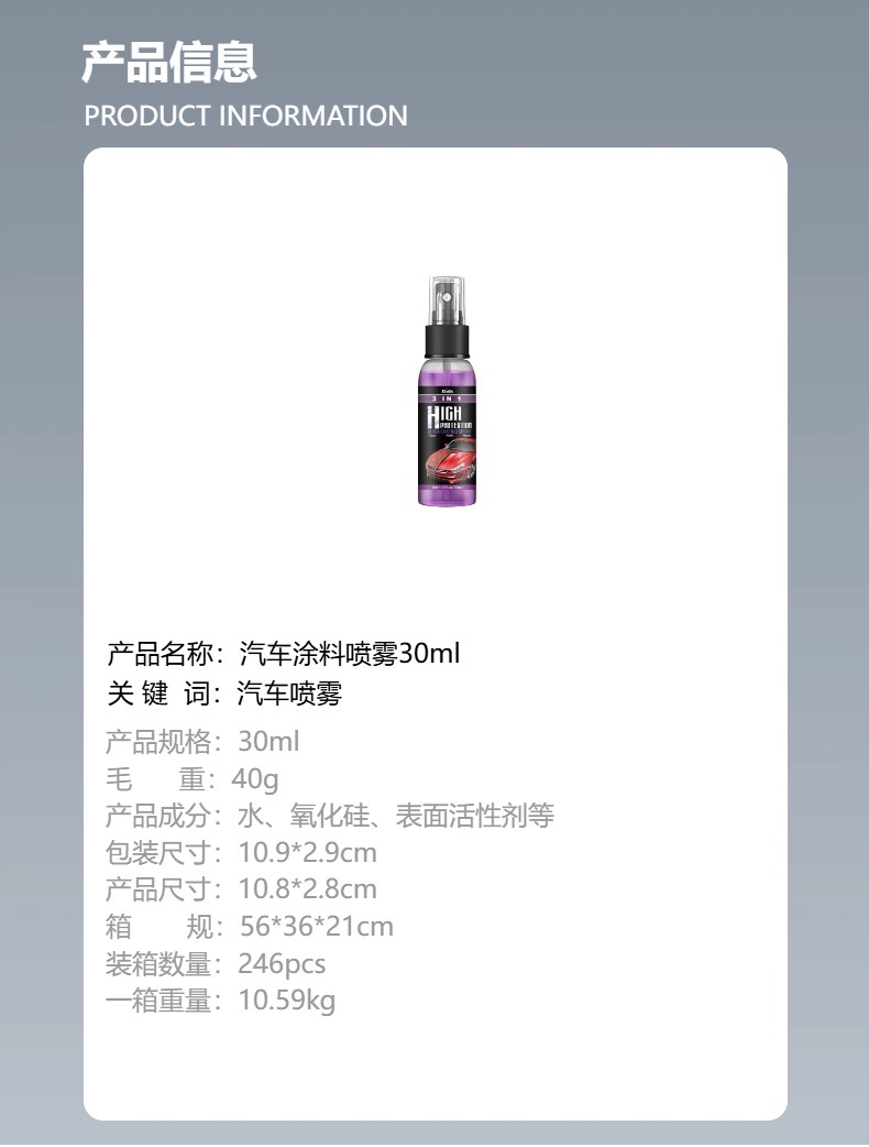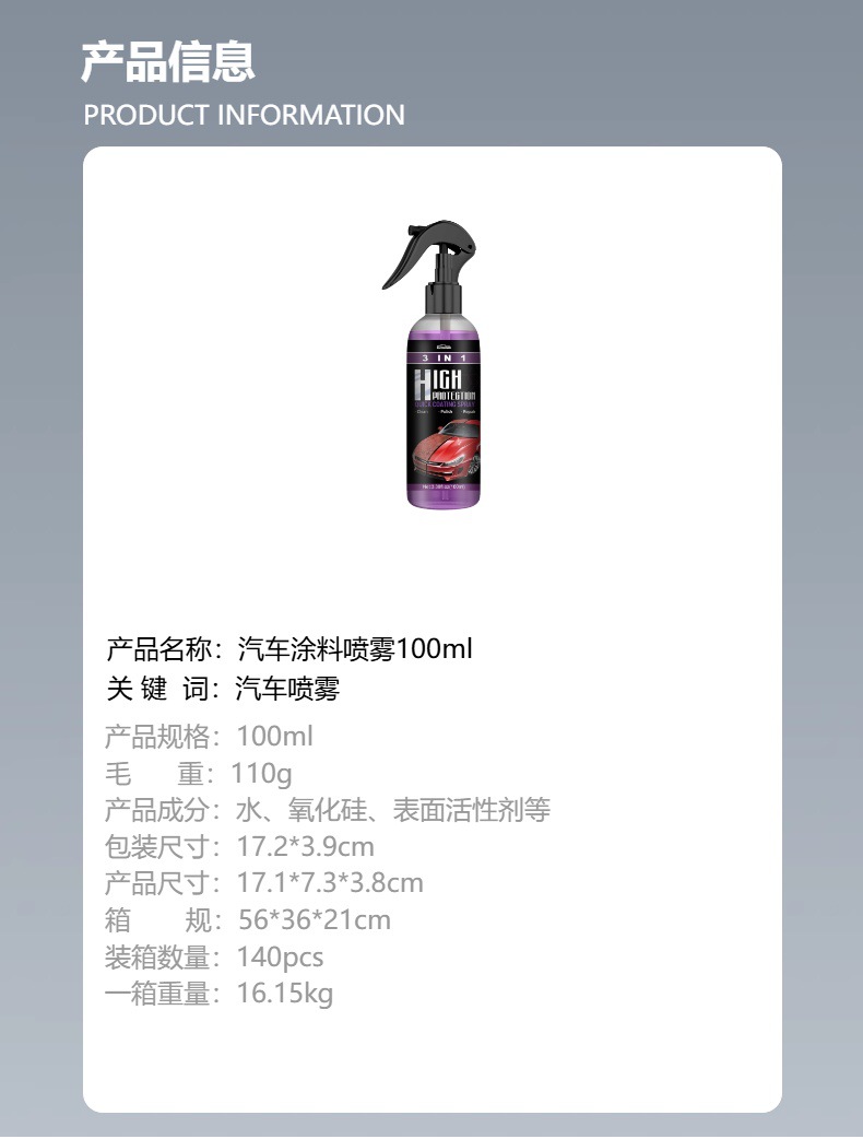 Rayhong 3合1高保护快速汽车涂料喷雾自动手涂料改色清洁镀膜喷雾专供出口 English | 投诉