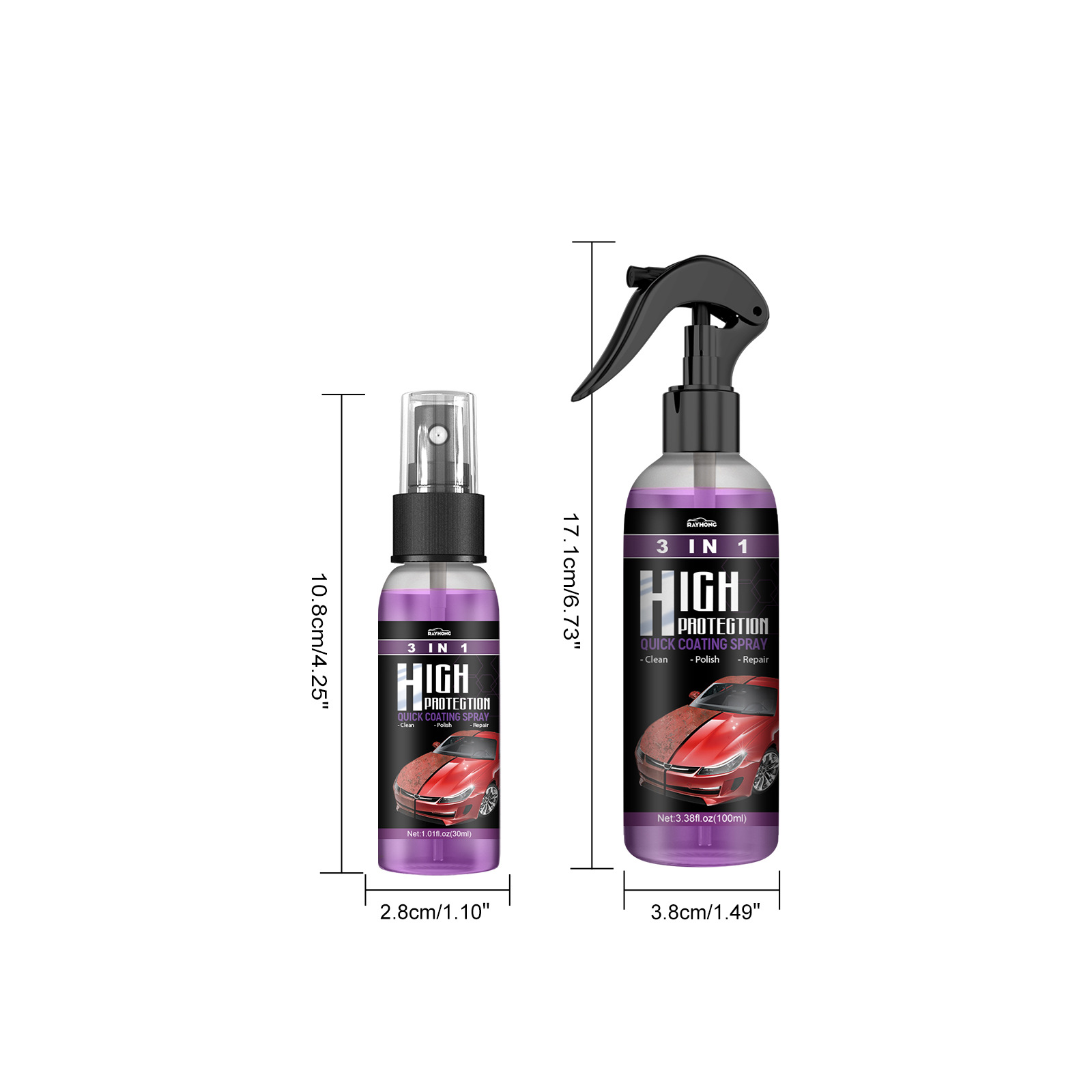 Rayhong 3合1高保护快速汽车涂料喷雾自动手涂料改色清洁镀膜喷雾