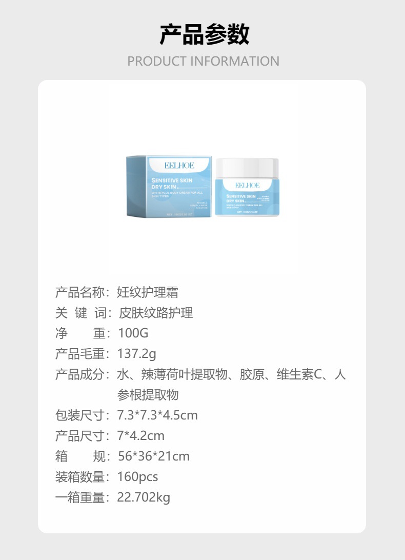 EELHOE 妊纹护理霜 胶原紧肤滋润皮肤纹路补水保湿嫩肤养护霜专供出口 English | 投诉
