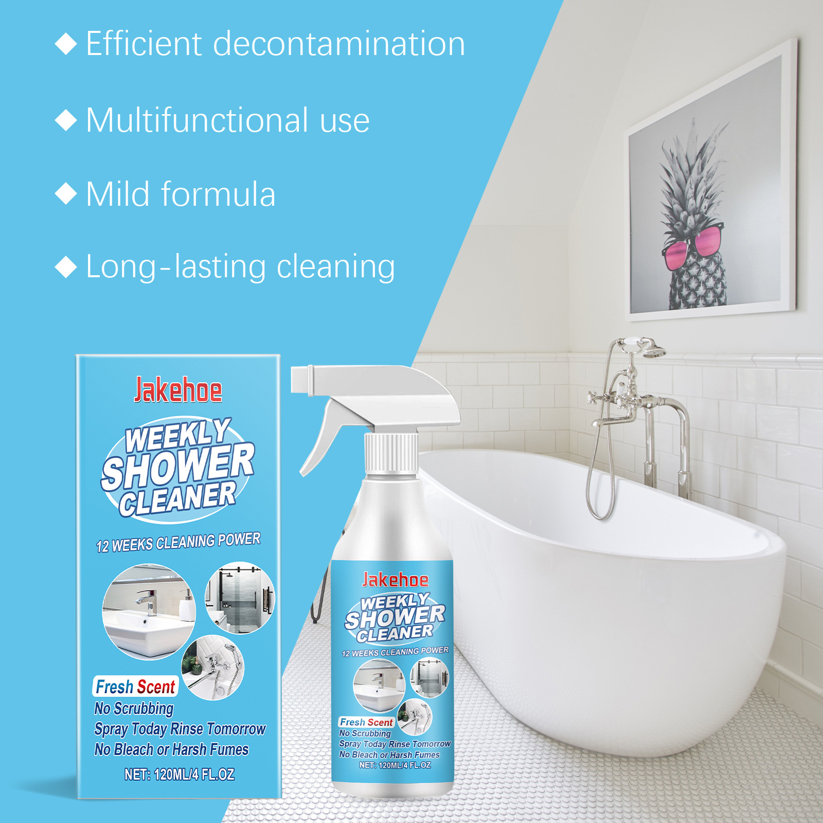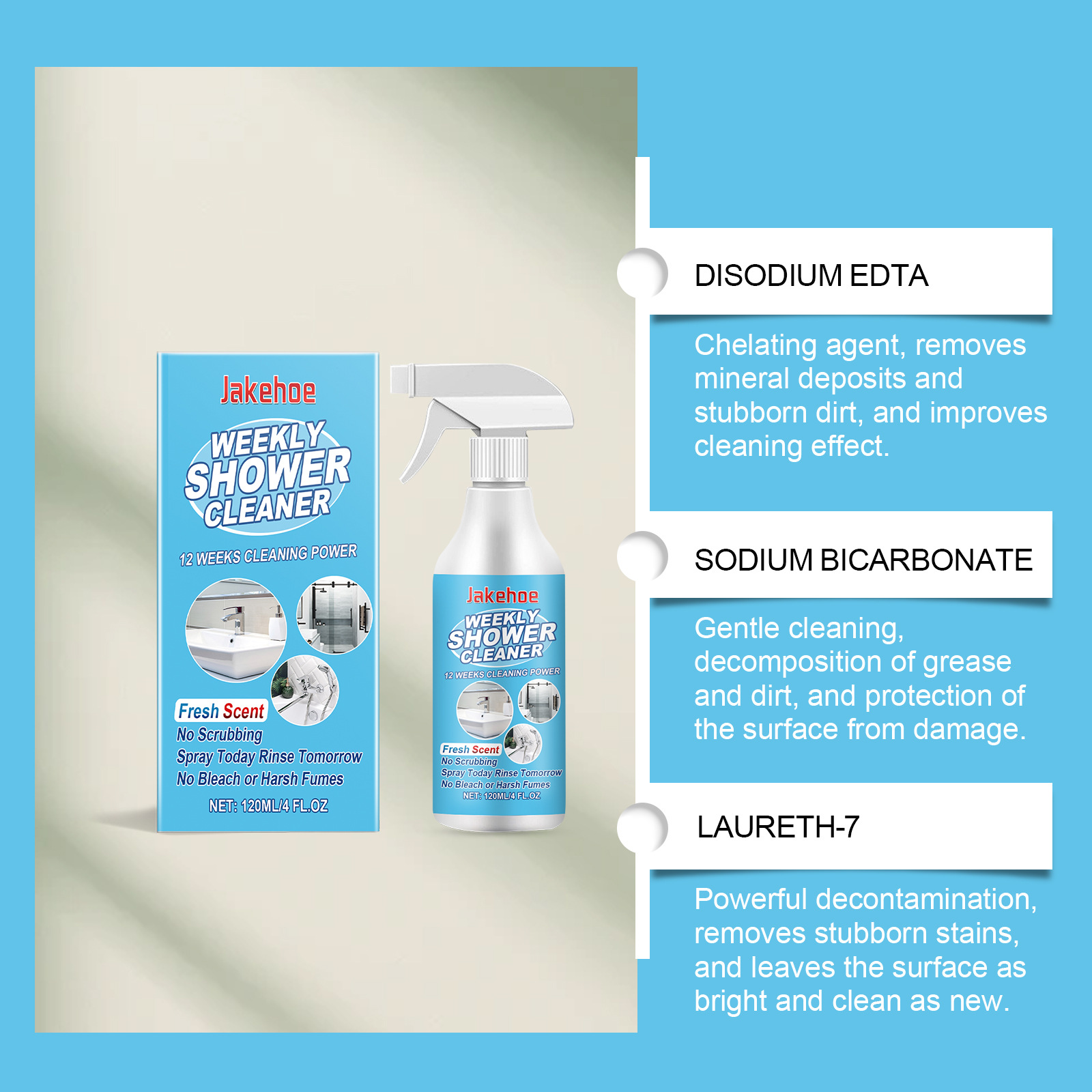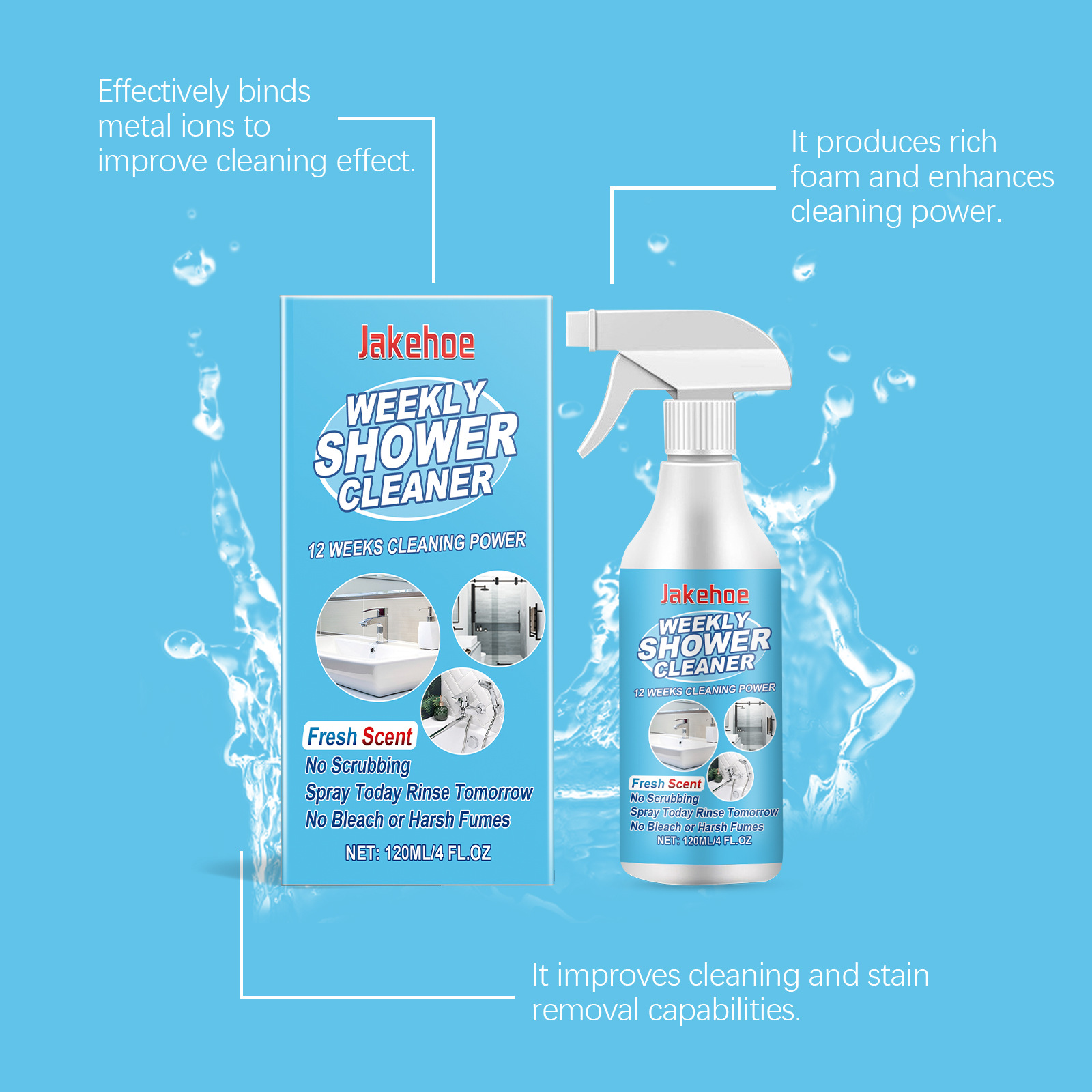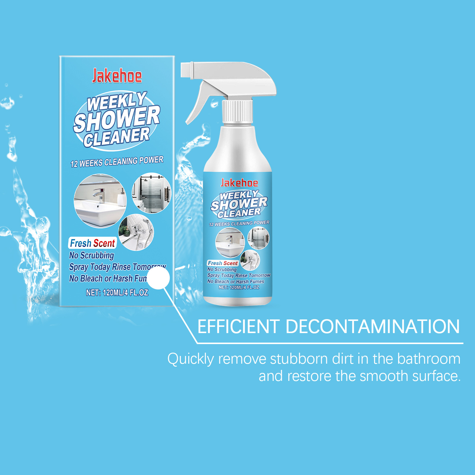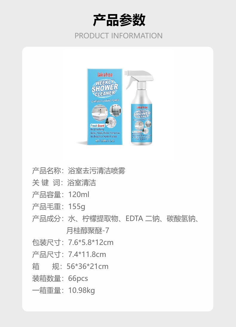 Jakehoe 浴室去污清洁喷雾 清洁浴室玻璃门浴缸去污渍水渍清洁剂专供出口 English | 投诉