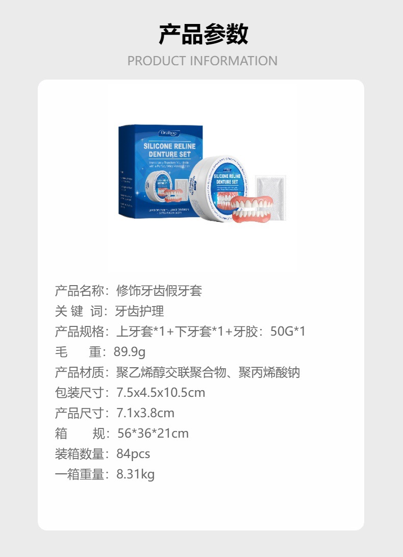 ORALHOE 修饰牙齿假牙套 提升笑容美观舒适材质补齐假牙套装专供出口 English | 投诉