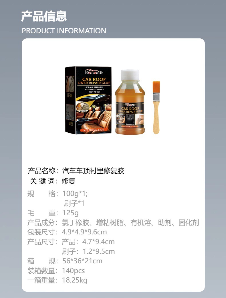 Homonth汽车车顶衬里护理胶 汽车车顶衬里粘合剂专供出口 English | 投诉