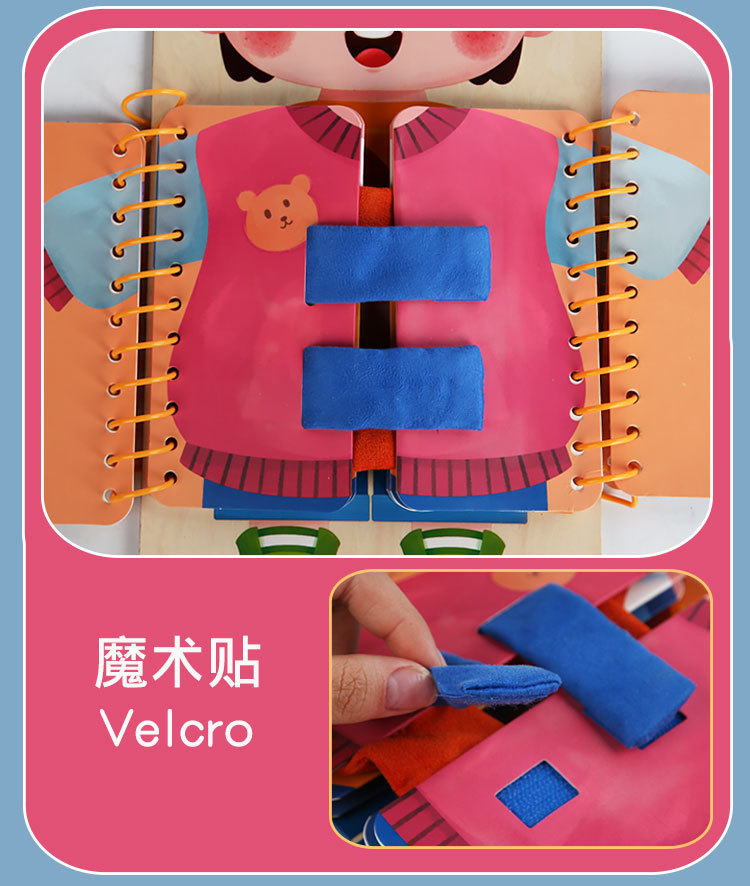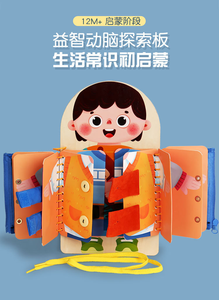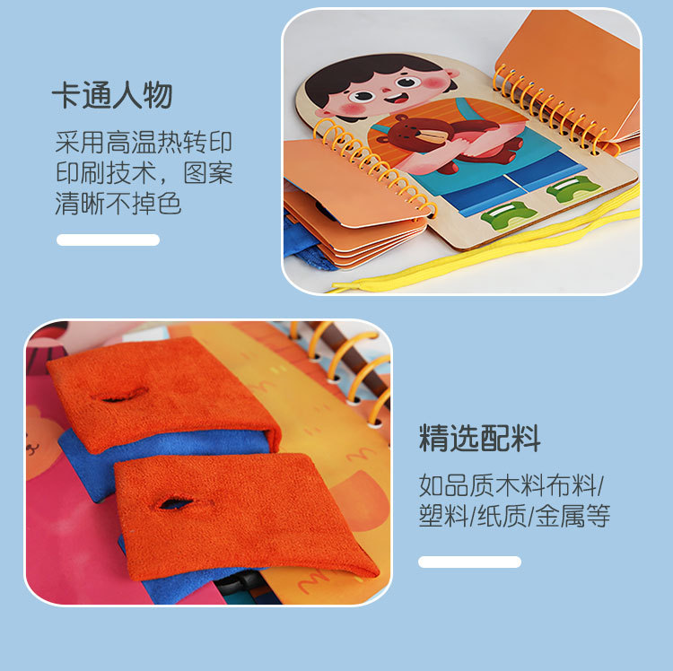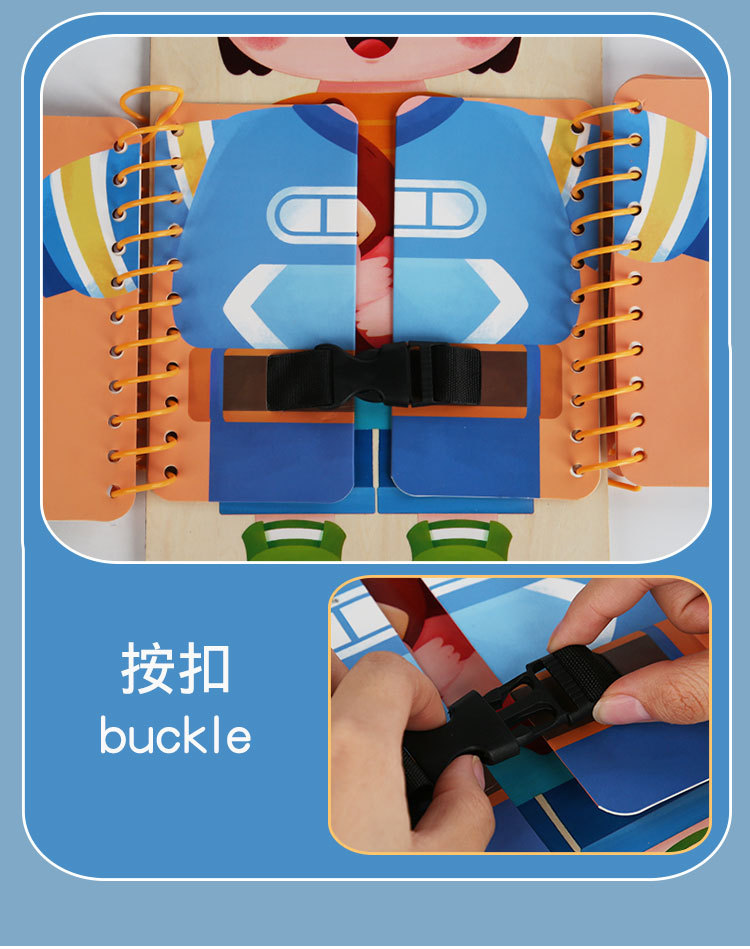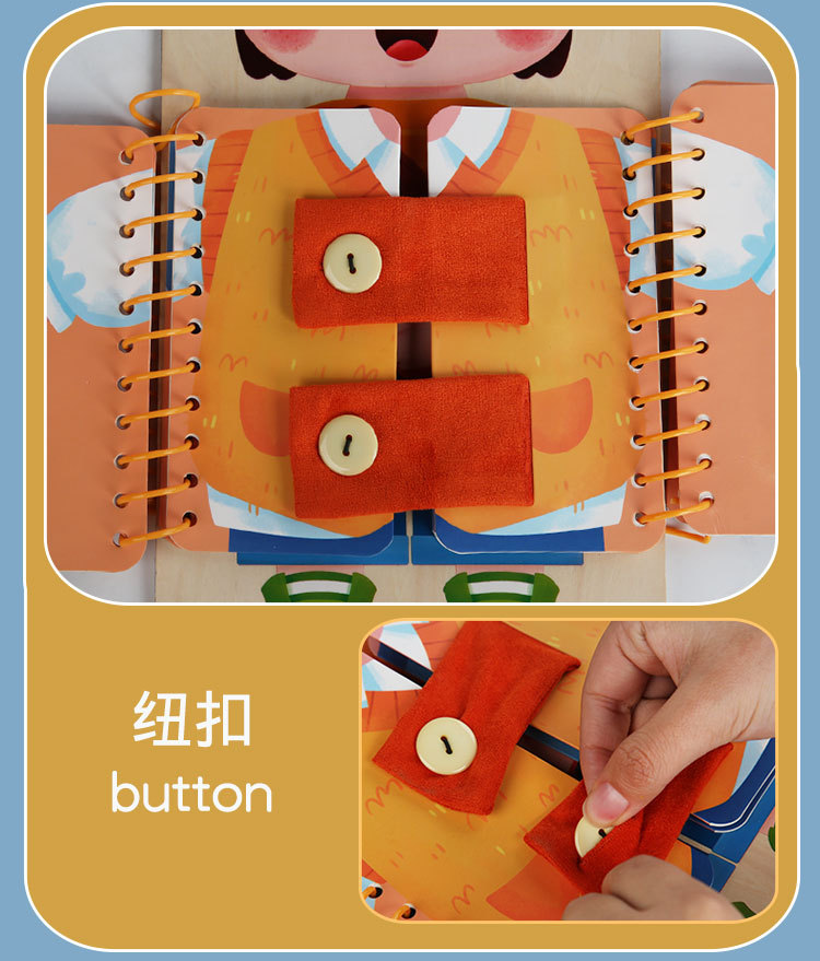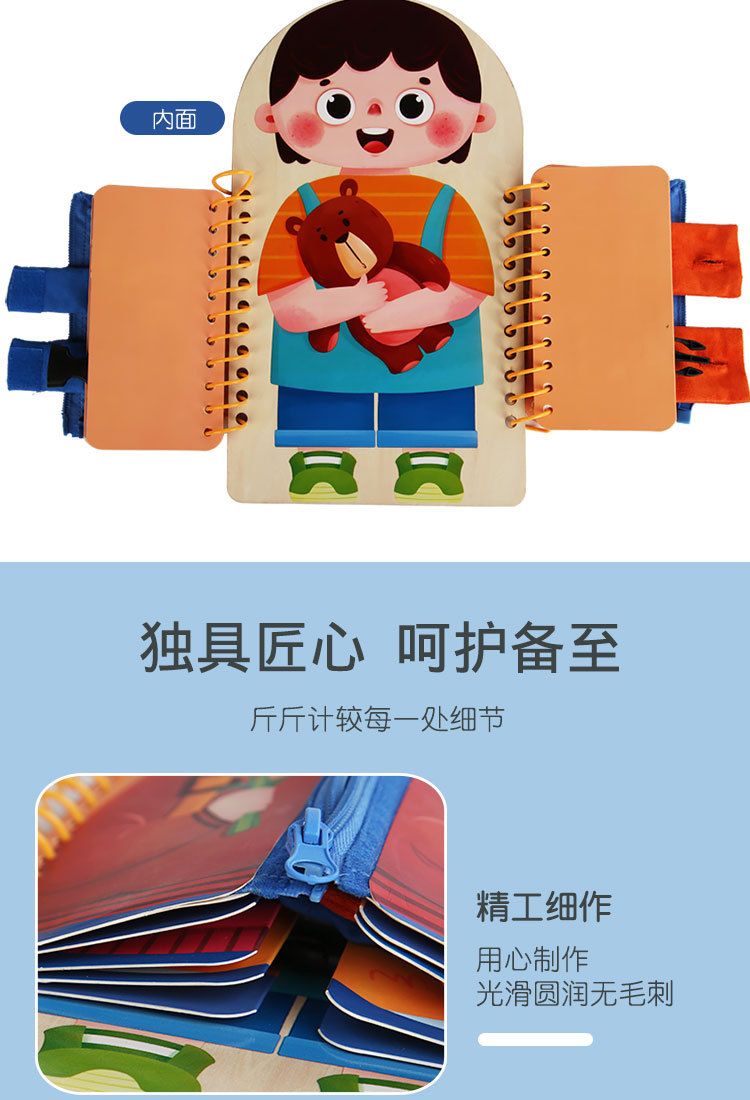 早教启蒙生活技能训练多层穿衣 忙碌板 幼儿童系扣子纽扣木制玩具 English | 投诉