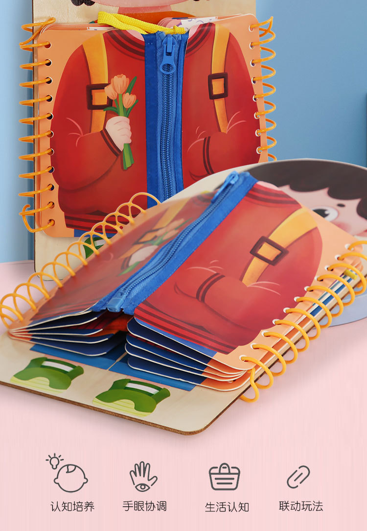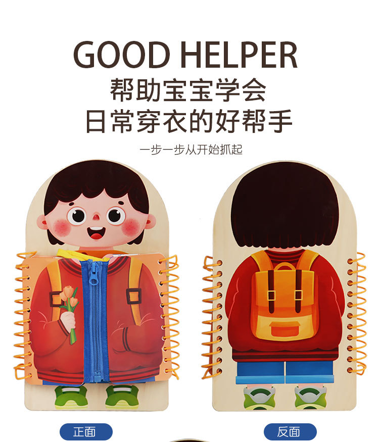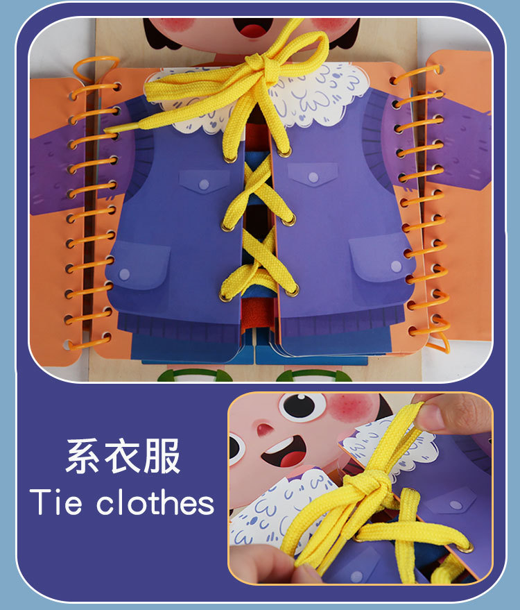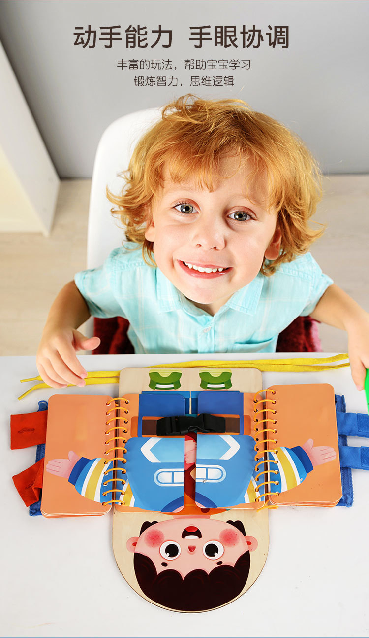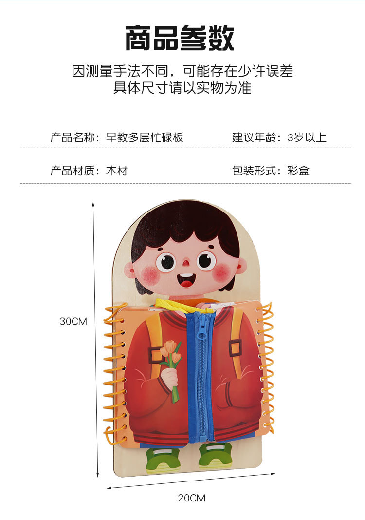 早教启蒙生活技能训练多层穿衣 忙碌板 幼儿童系扣子纽扣木制玩具 English | 投诉