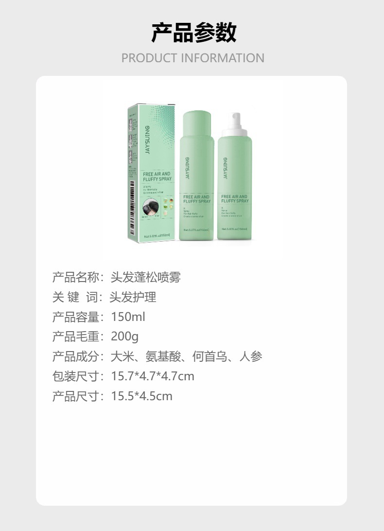 Jaysuing 头发蓬松喷雾 油头蓬松清爽喷雾懒人免洗干发喷雾专供出口 English | 投诉