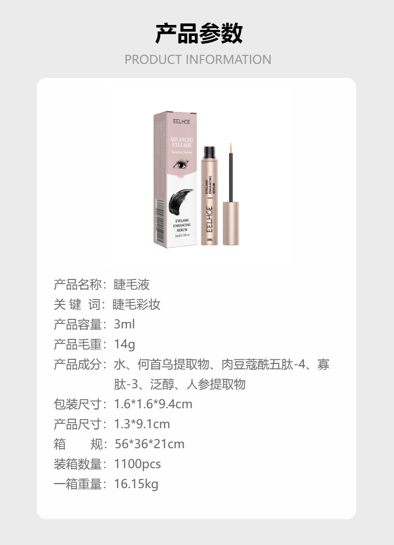 EELHOE 睫毛液 自然无痕卷翘纤长浓密靓丽睫毛滋润护理液专供出口 English | 投诉