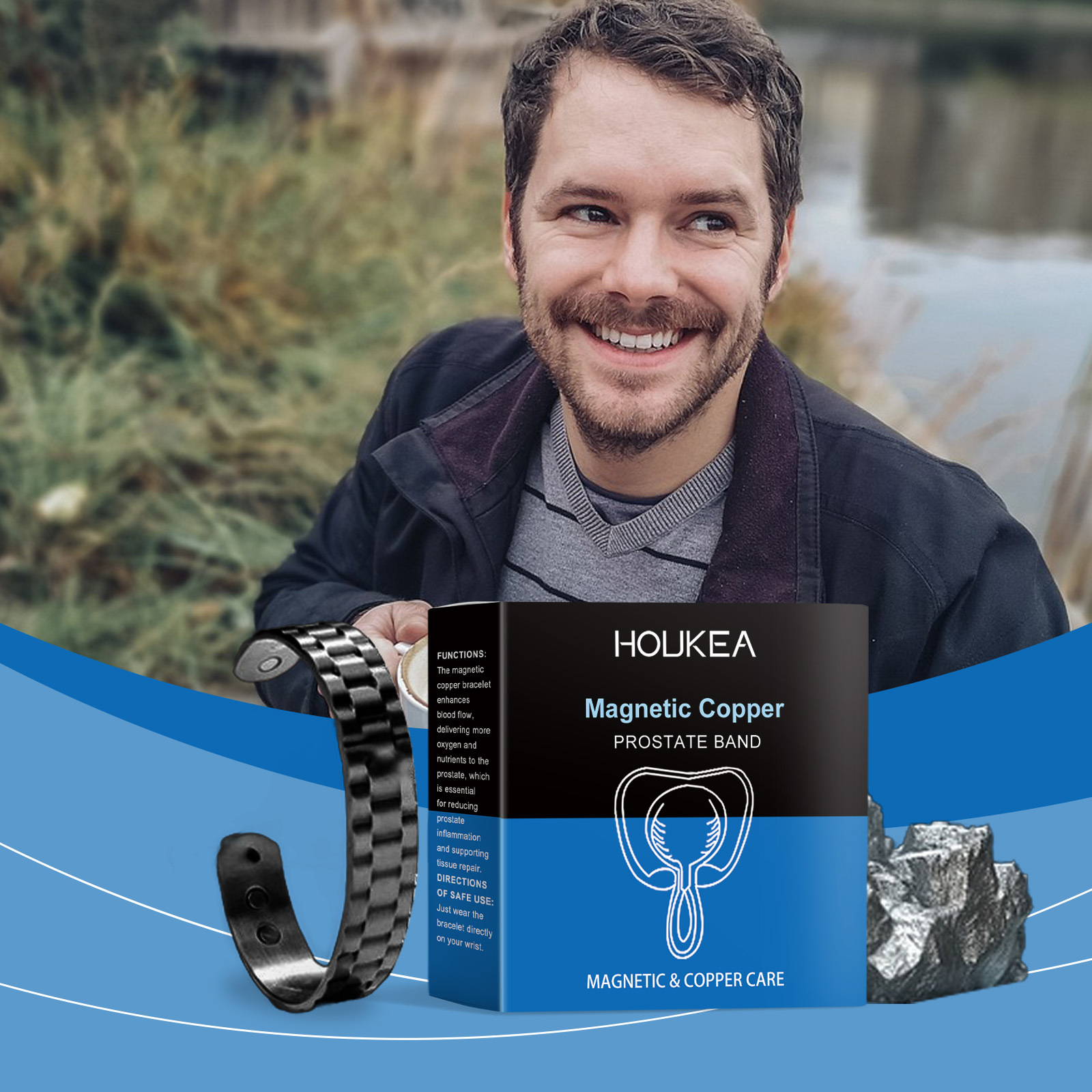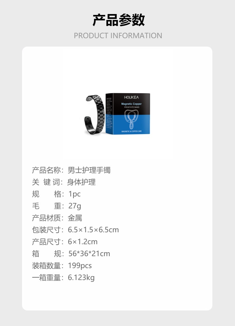 HouKea 男士护理手镯 温和缓解男士不适身体护理复古时尚饰品手镯专供出口 English | 投诉
