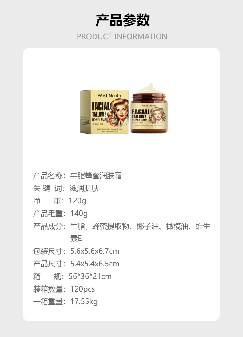 WEST MONTH牛脂蜂蜜润肤霜 补水保湿滋润肌肤柔嫩润肤霜专供出口 English | 投诉