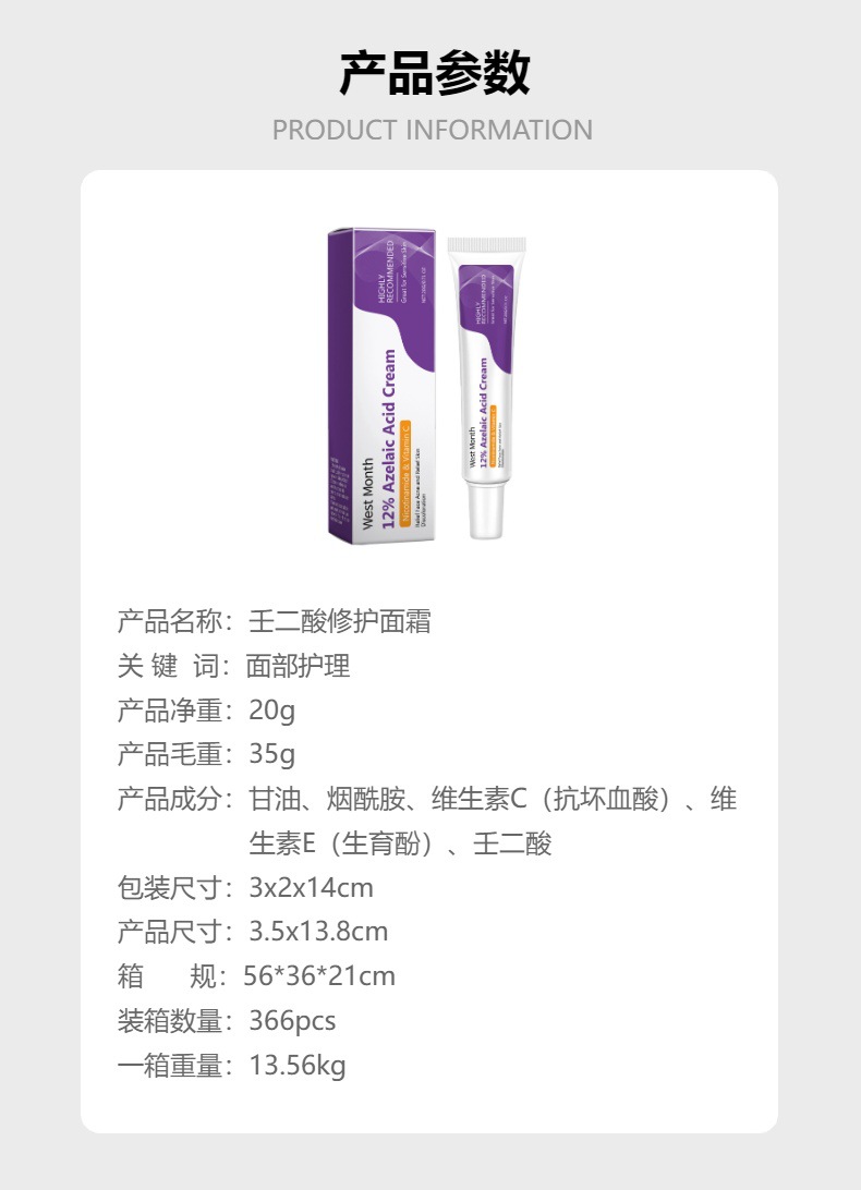 West Month 壬二酸修护面霜 温和修护脸部皮肤净颜面霜专供出口 English | 投诉