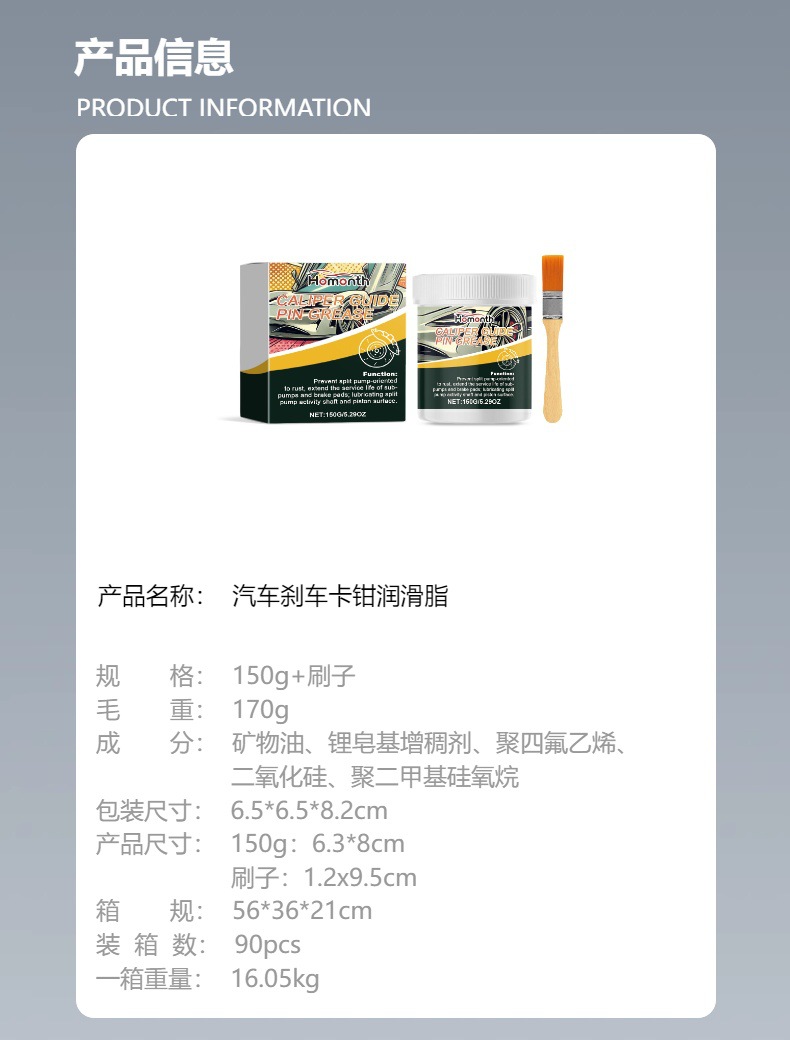 HOMONTH 汽车刹车卡钳润滑脂 硅基润滑油剂卡钳防咬合保养润滑脂专供出口 English | 投诉