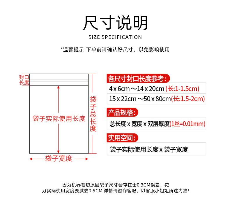| 13*19*白边透明 100个*10丝 | ¥810 | 10000包可售 |