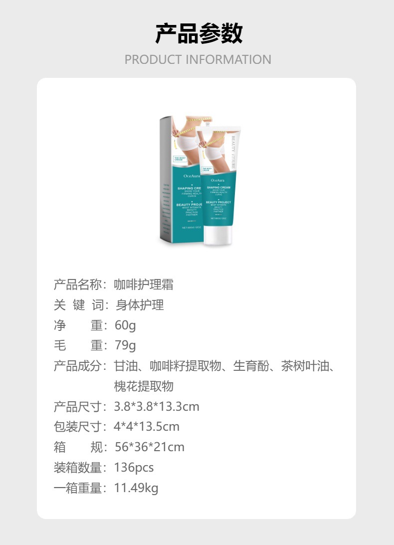 OceAura 咖啡护理霜 温和呵护肌肤滋润光滑柔嫩身材线条涂抹乳霜专供出口 English | 投诉