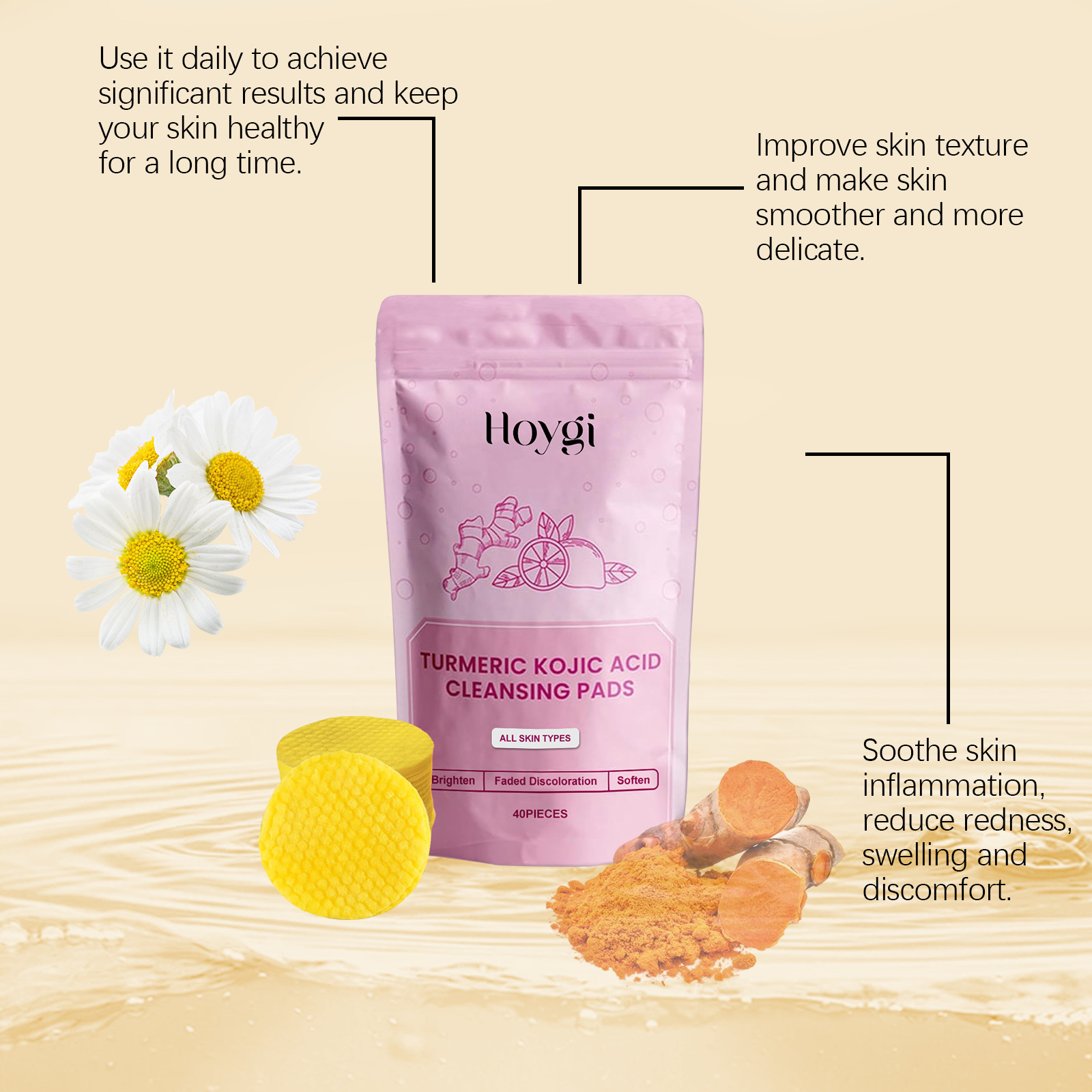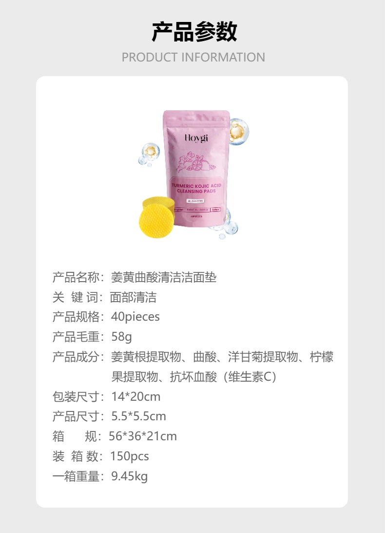 HOYGI 姜黄曲酸清洁洁面垫 温和修护肌肤毛孔补水护肤垫专供出口 English | 投诉