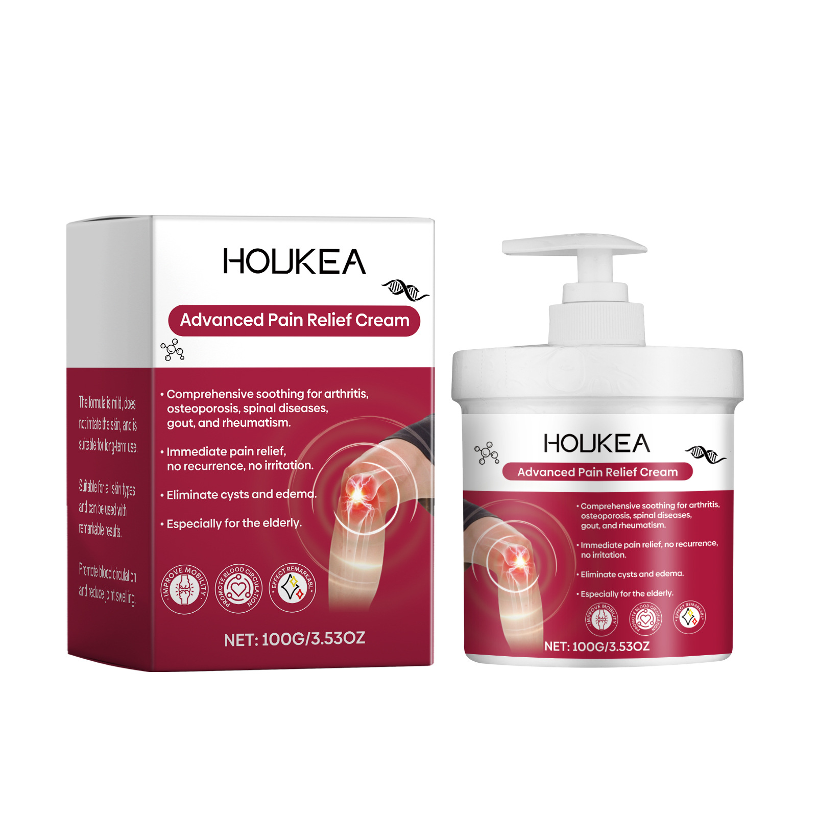 Houkea 关节护理霜 日常身体膝盖手肘温和护理按摩养护涂抹霜专供出口 English | 投诉