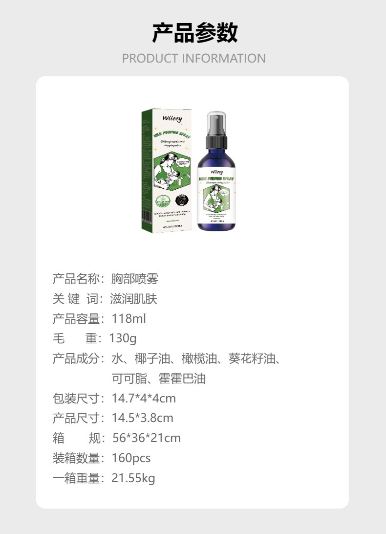 wiieey 胸部喷雾 修护滋润肌肤母乳喂养胸部护理喷雾专供出口 English | 投诉