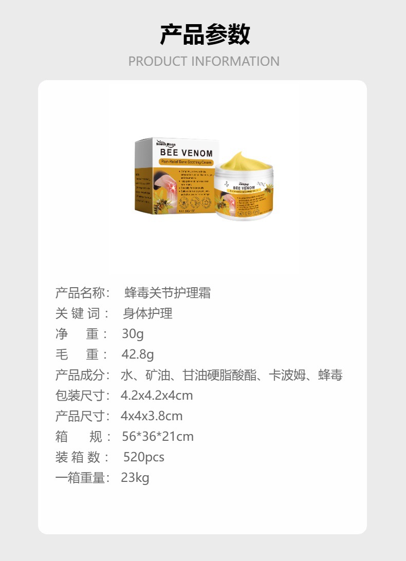 SOUTH MOON 蜂毒关节护理霜 日常按摩温和滋润舒适草本身体护理霜专供出口 English | 投诉
